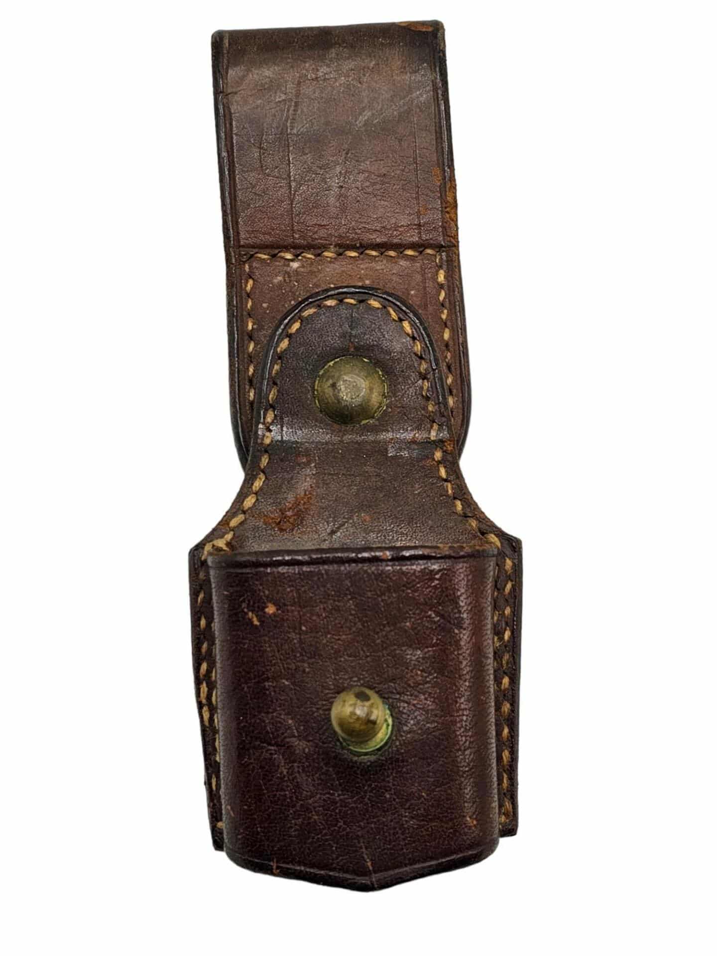De klewangdrager verkeerd in een zeer mooie lichtbruine staat. De klewangdrager werd gedragen aan de manschappen koppel en past niet op een Sam Brown draagstel. Dit model klewangdragers werd bijvoorbeeld gebruikt door het Korps Politietroepen en door het Korps Pontonniers. De klewang drager is nog duidelijk gemarkeerd met de maker, de firma van der horst en de heus.