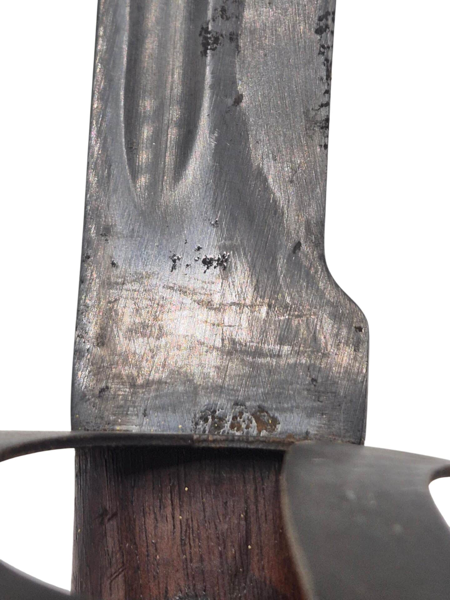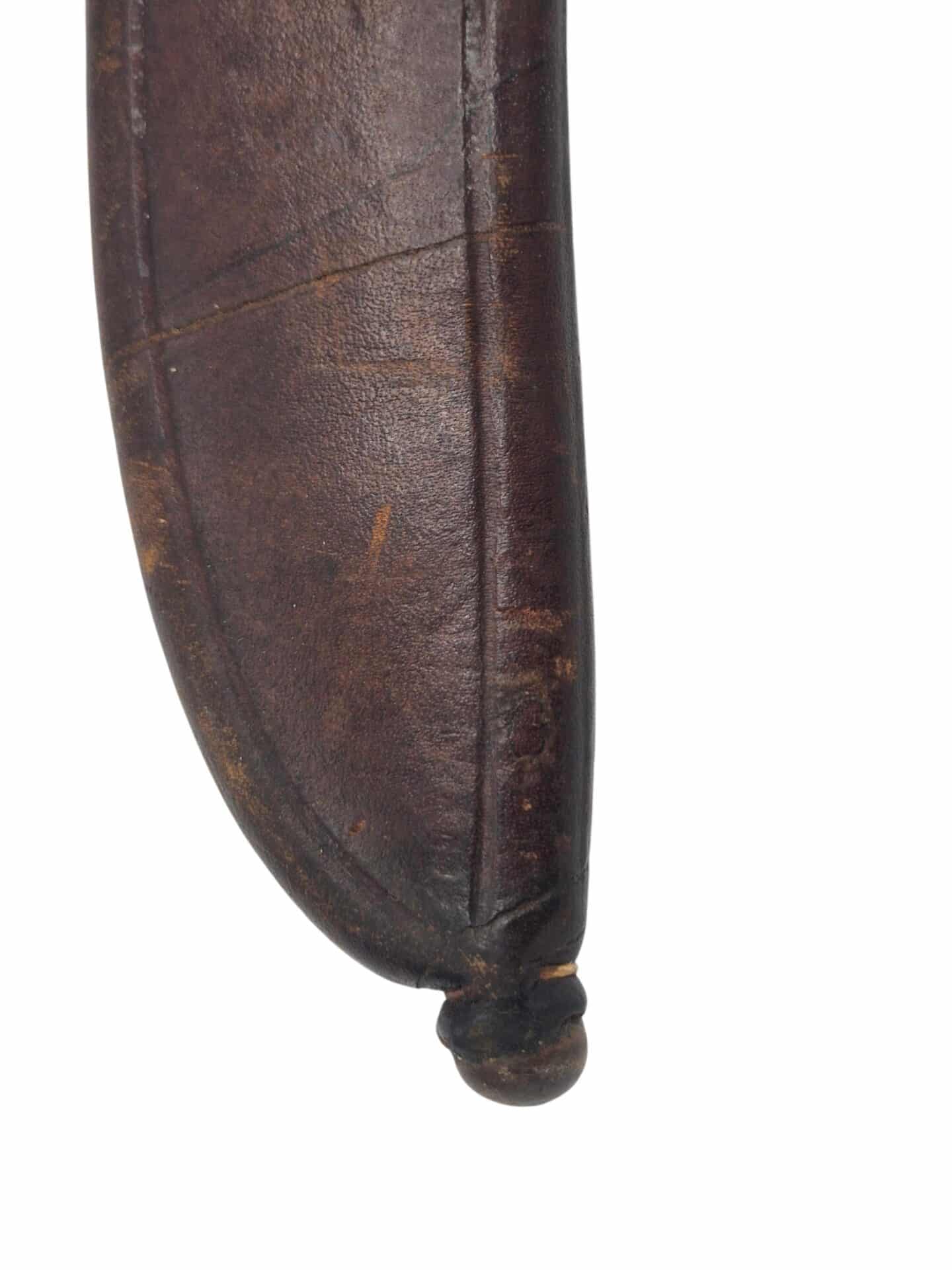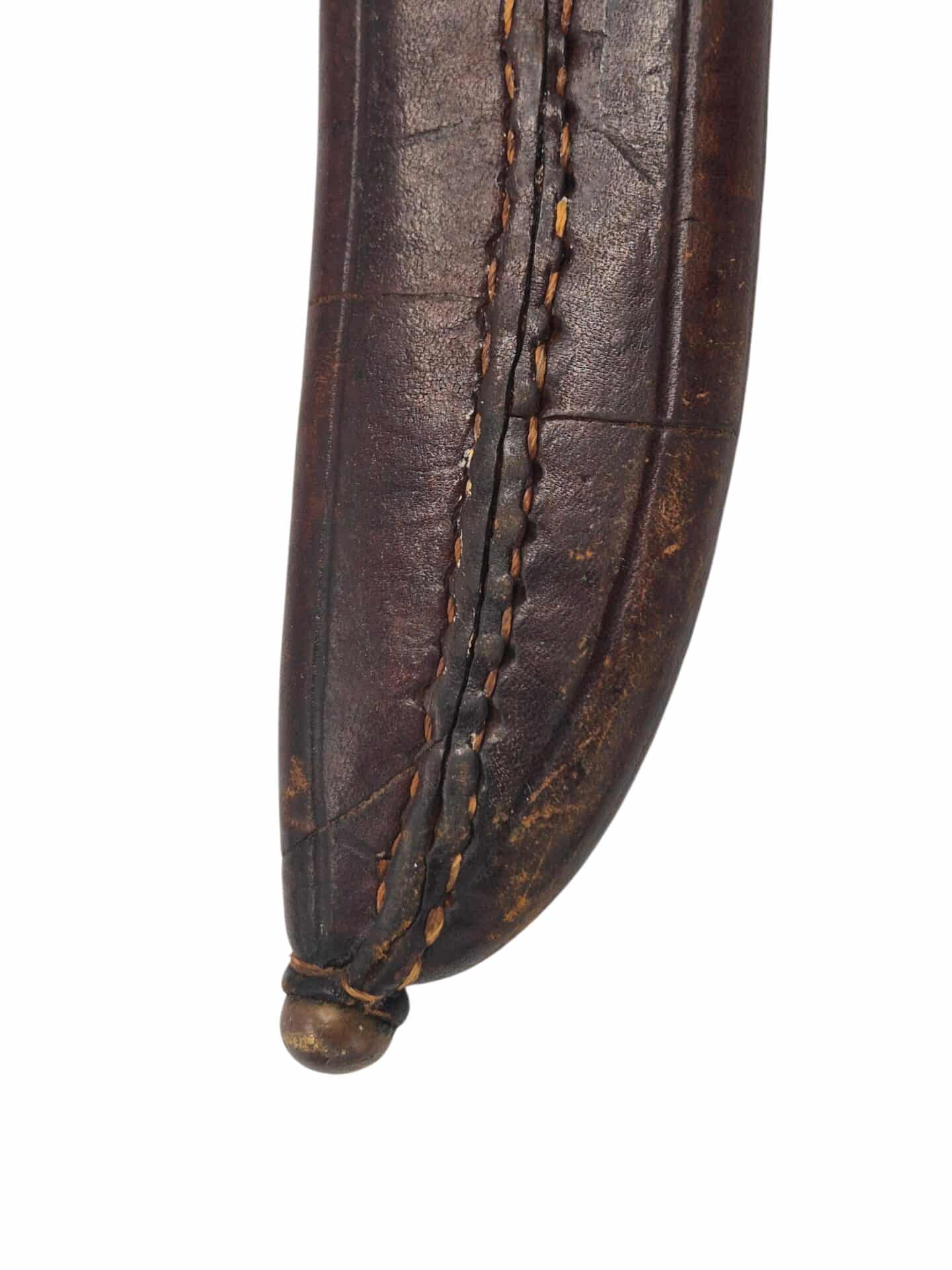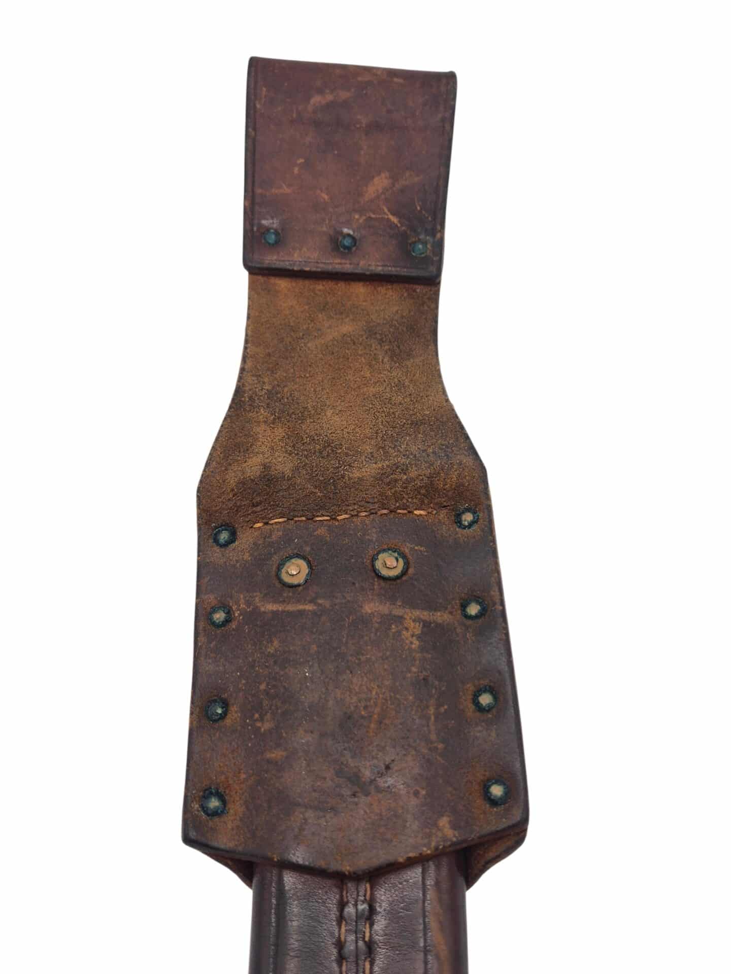 Zeldzame Nederlandse M1912 Marine/Mariniers Klewang . De schede is in een prachtige staat met een mooie glans. Het leer is mooi soepel en bruin. Het stiksel is overal nog volledig intact zelfs het touwtje aan de onderzijde is nog aanwezig en intact. De schede is niet gemerkt. De Klewang zelf is in een zeer goede conditie met een groot deel van de originele blauwe afwerking aanwezig. Het lemmet is nergens gemarkeerd en ook de korf is niet genummerd, dit is correct voor een marine en mariniers klewang. Ongemerkte klewangs zijn extreem zeldzaam. Zeer mooie en bijzondere klewang voor de blanke wapen verzamelaar.