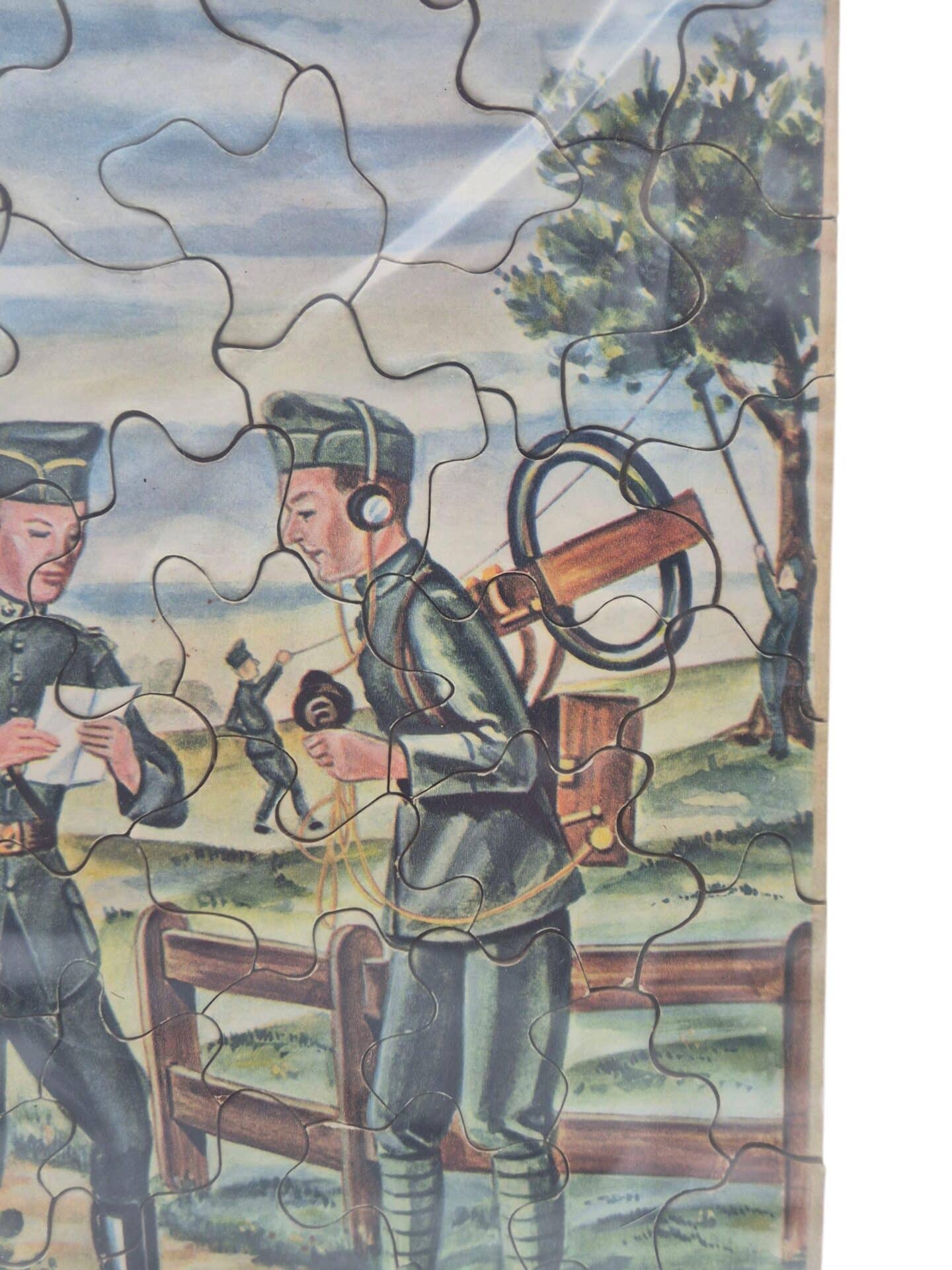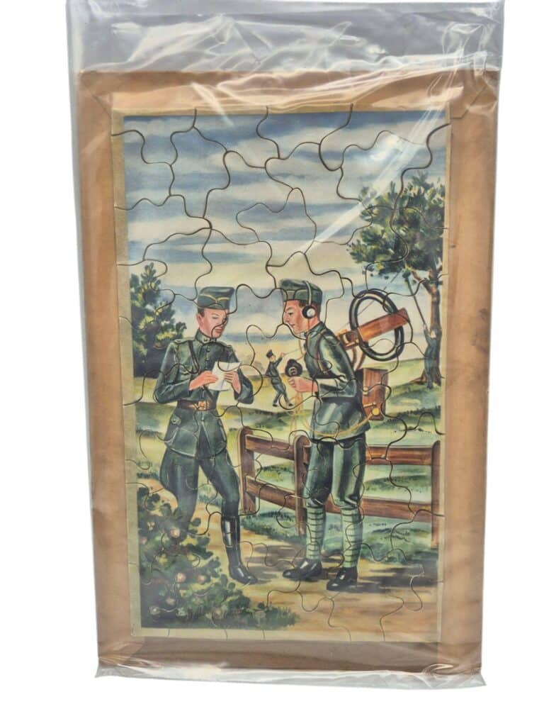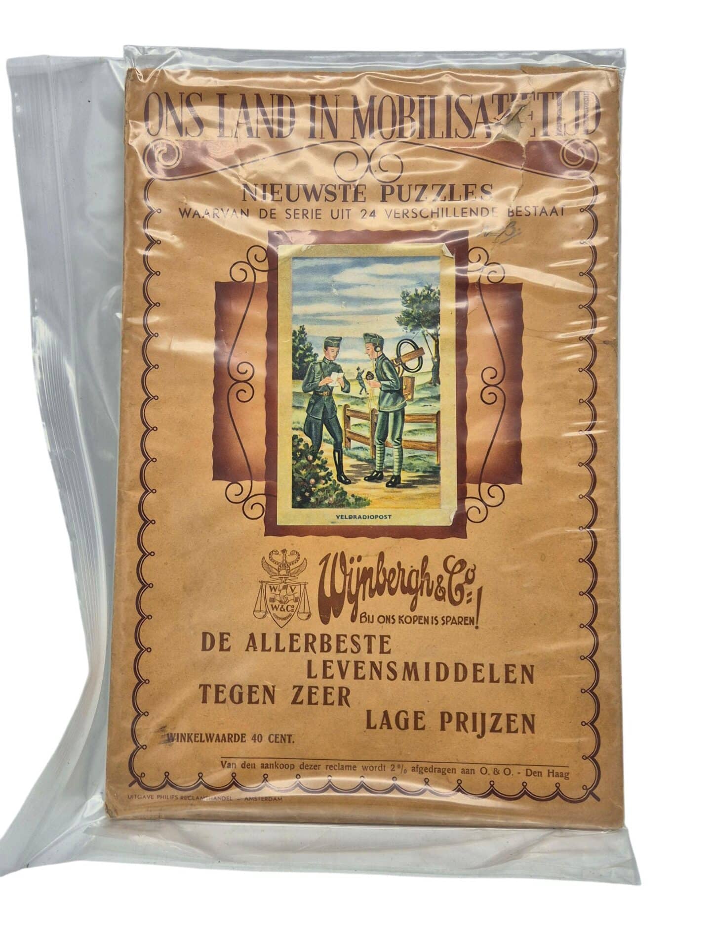 Mooie Nederlandse mobilisatiepuzzel met originele envelop. De puzzel is nog in een goede conditie hij mist alleen het kartonnen frame waar hij in geleverd werd. De puzzel is nog mooi van kleur en een erg leuk stukje uit de mobilisatie.