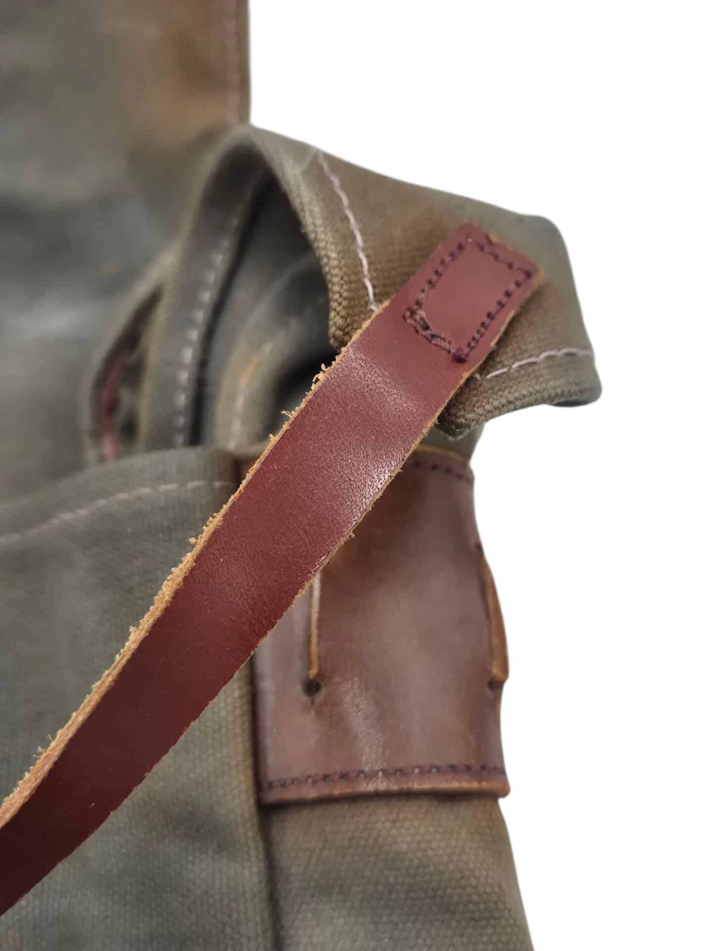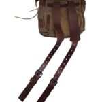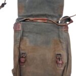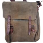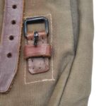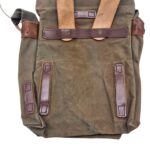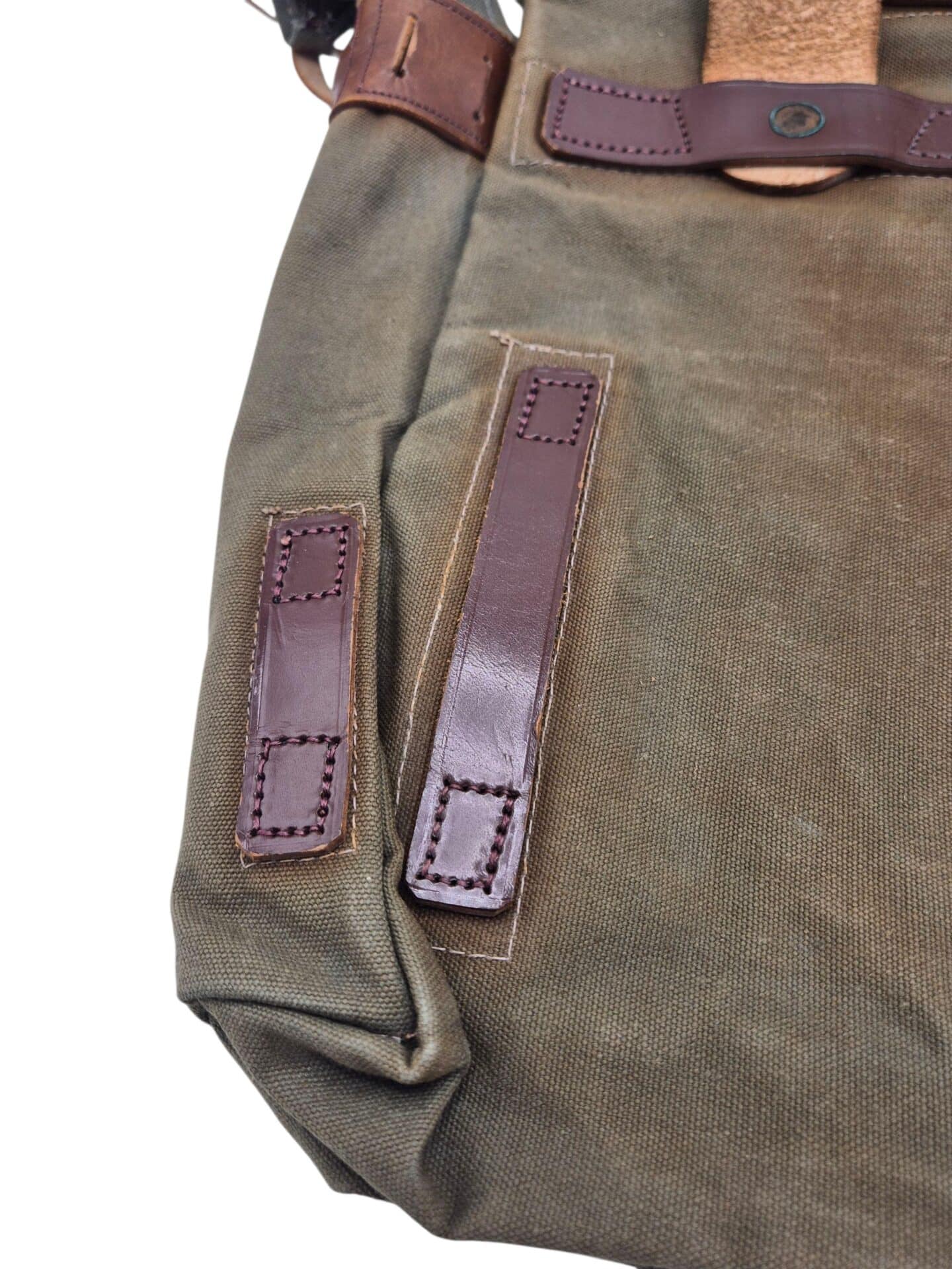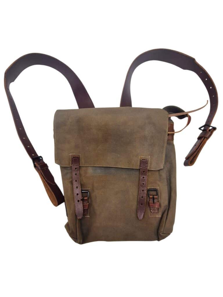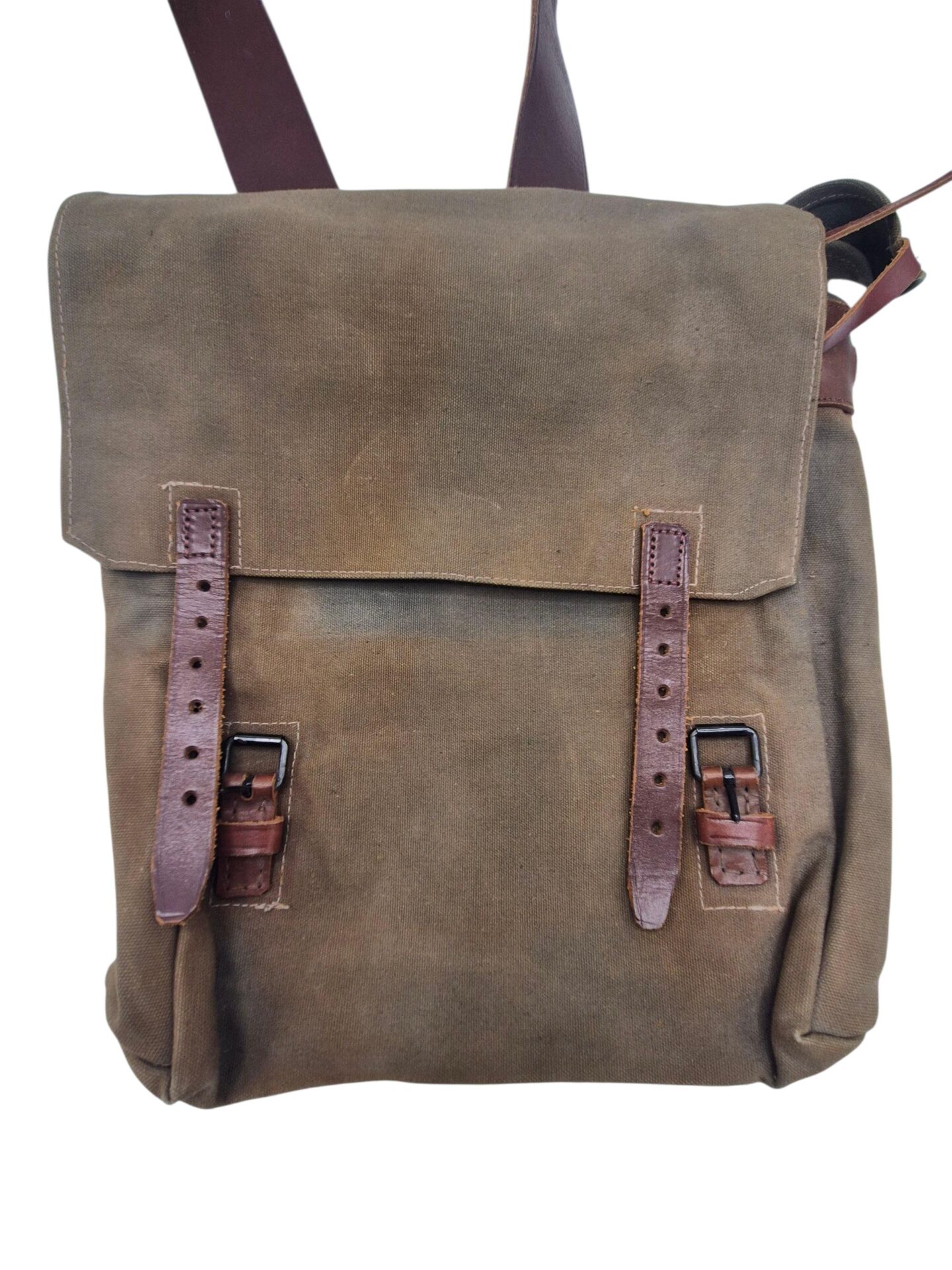 Nederlands buitenmodel officiers ransel. Deze ransels zijn te herkennen aan het ontbreken van de riempjes om het eetketel foedraal aan te bevestigen en de bredere band in de koppelpassanten waar de Sam Brown riem doorheen geschoven kon worden. Deze ransel verkeerd nog in een ongebruikte staat.  Ook zitten beide brede koppelpassanten voor de sam brown riem er bij. Mooi stukje velduitrusting voor een officier!