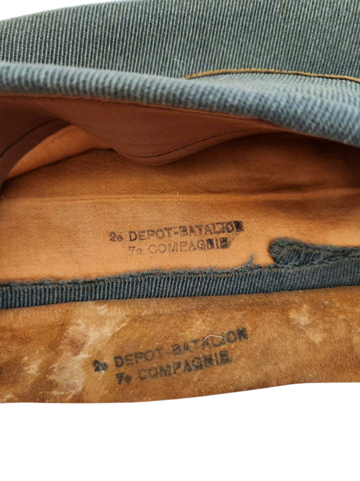 Vooroorlogse veldgrijze Nederlandse officiers veldmuts. De officier was ingedeeld bij de 7e compagnie van het 2e depot bataljon. De veldmuts verkeerd in een zeer goede staat. Onder de binnenvoering staat een dubbele stempel van het 2e depot bataljon.