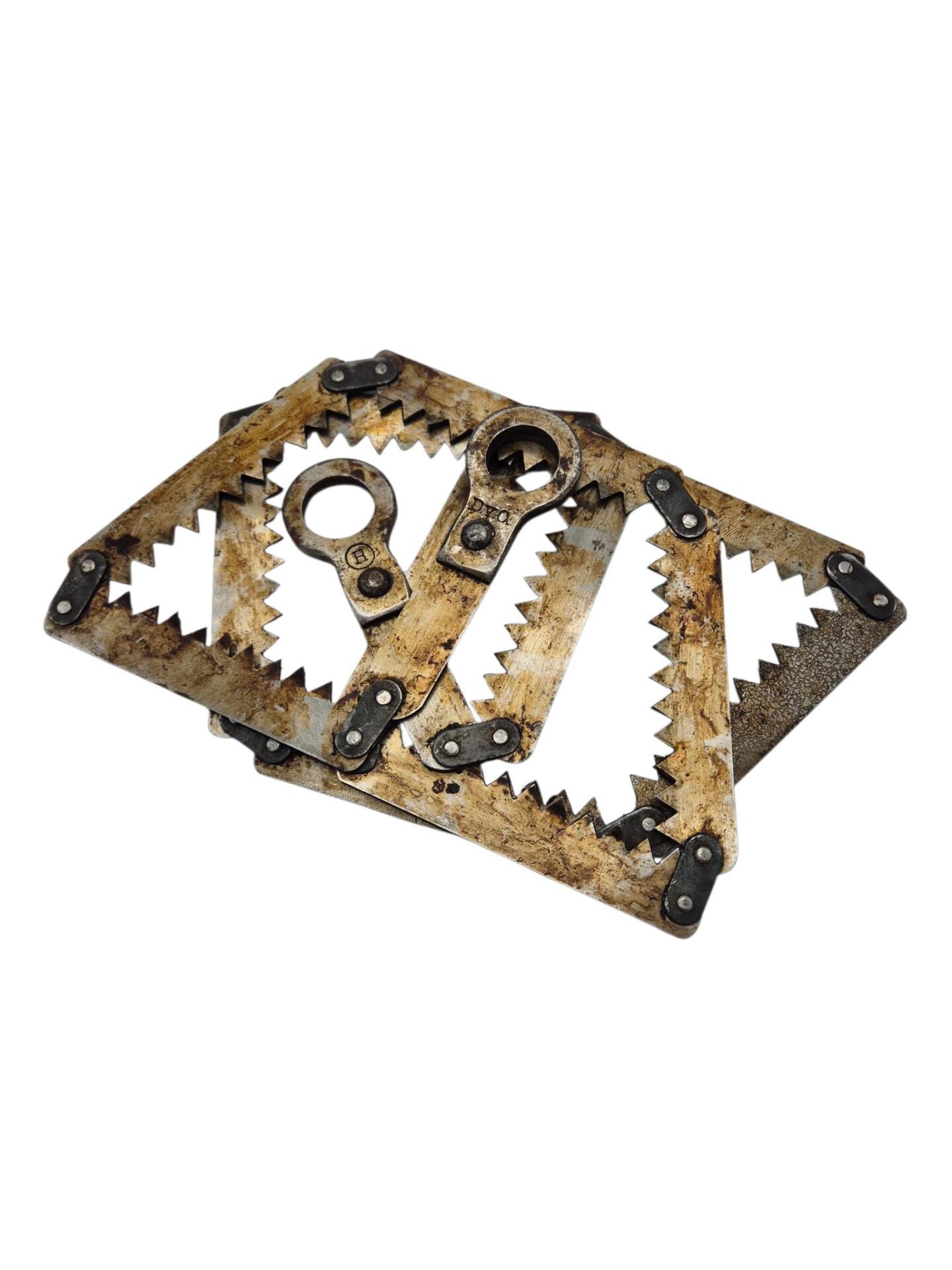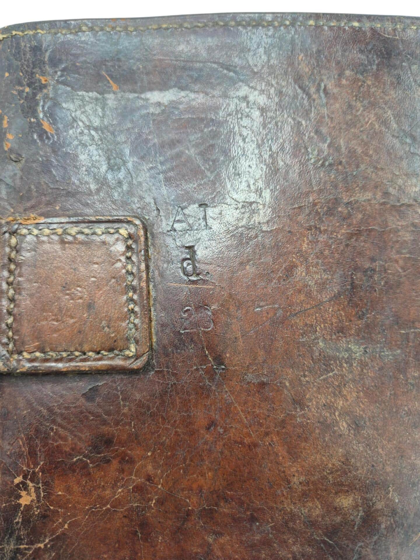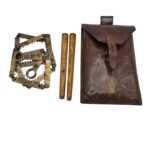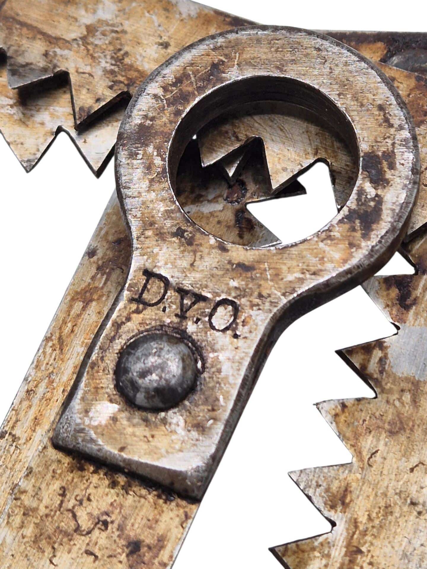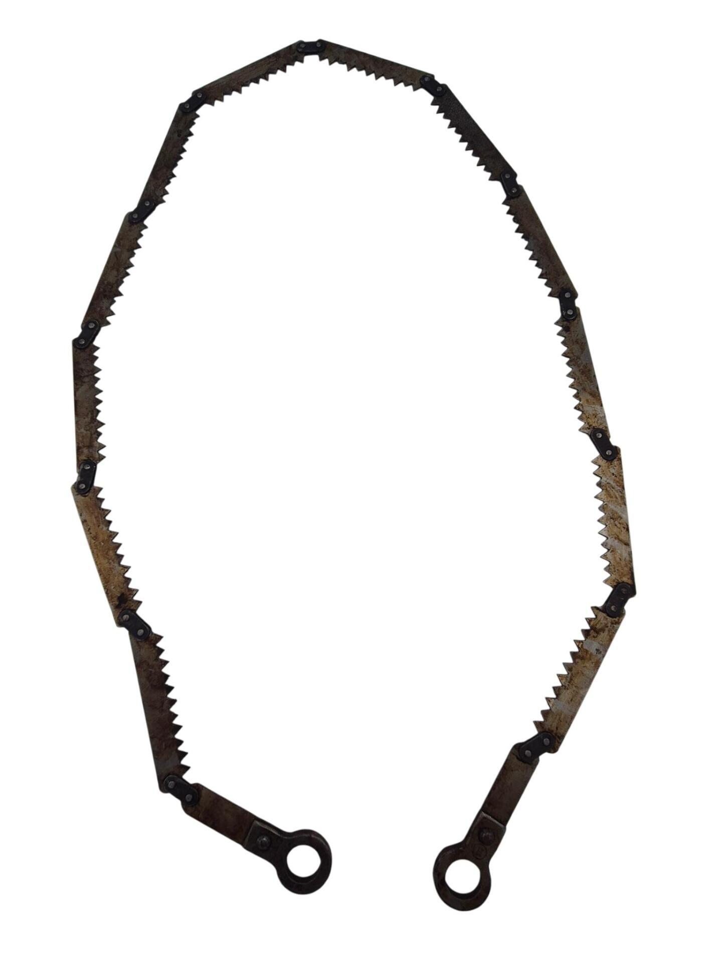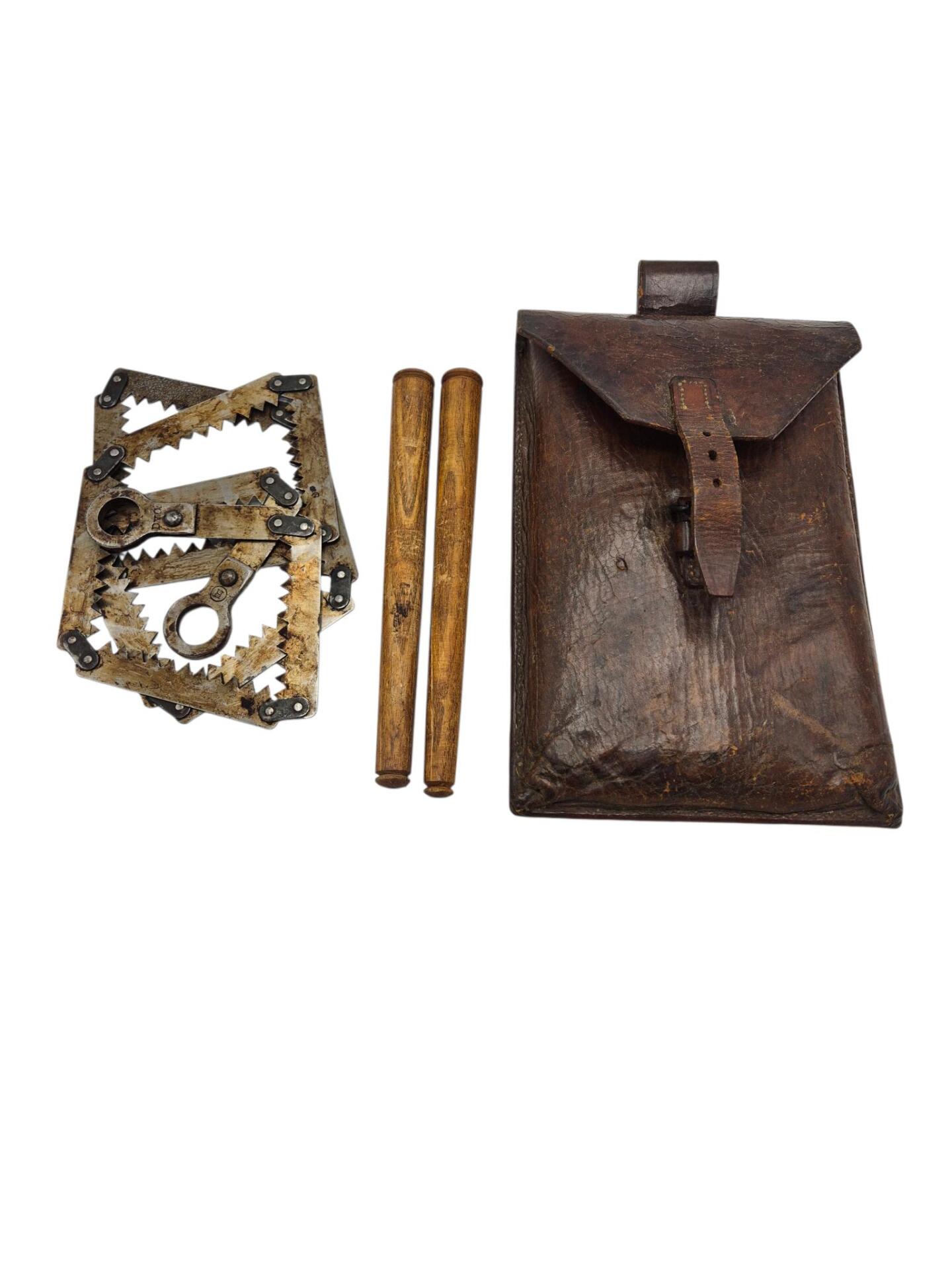 Zeldzame Nederlandse opvouwbare zaag in het originele foedraal. Het foedraal is gemaakt in 1928 bij de Artillerie inrichtingen. De zaag is zeer mooi DVO departement van oorlog gemarkeerd, De set is nog helemaal compleet met de houtjes die door de ogen heen werden gestoken.  Zeer mooie set van de opvouwbare zaag in zijn originele foedraal!
