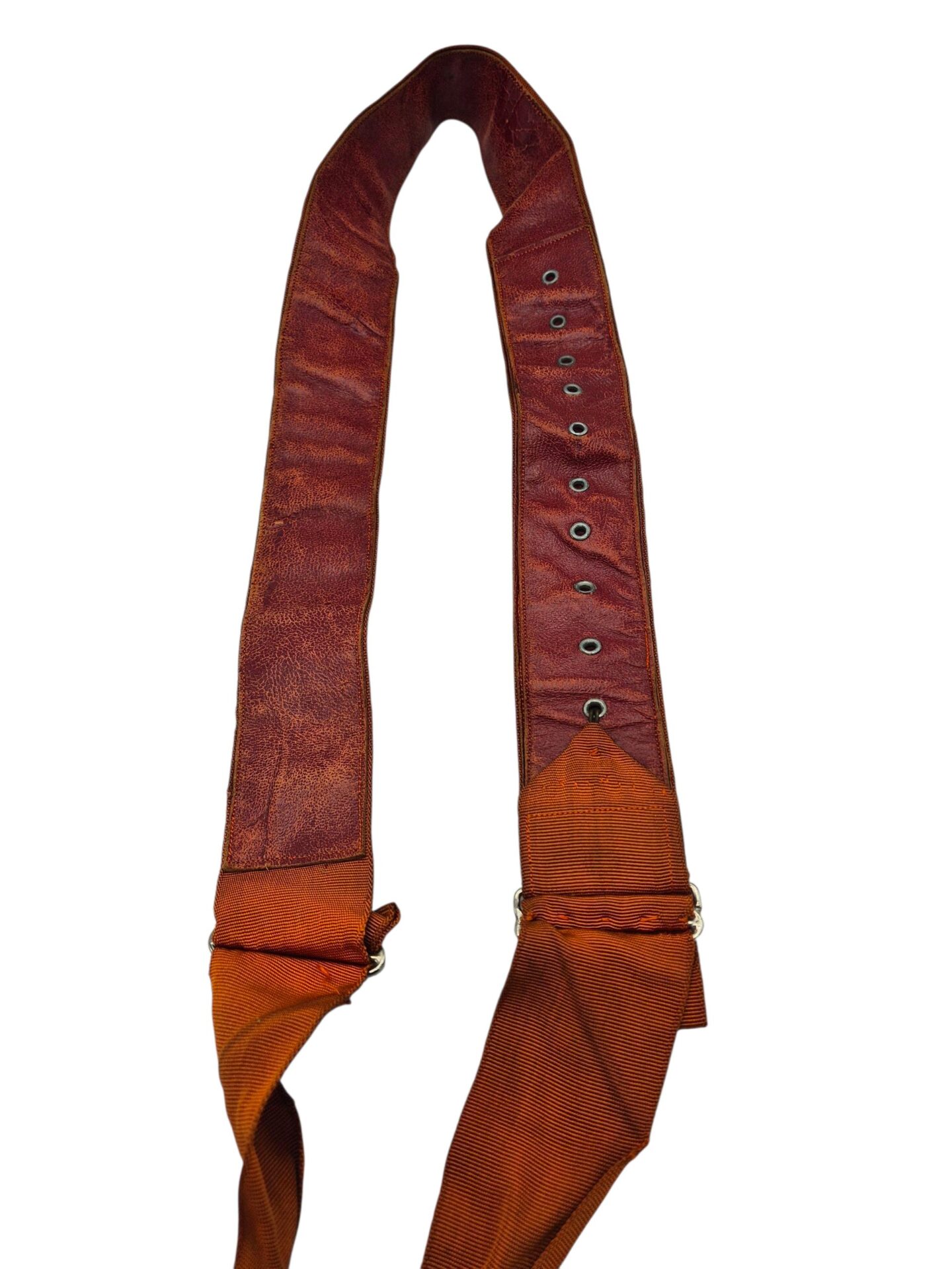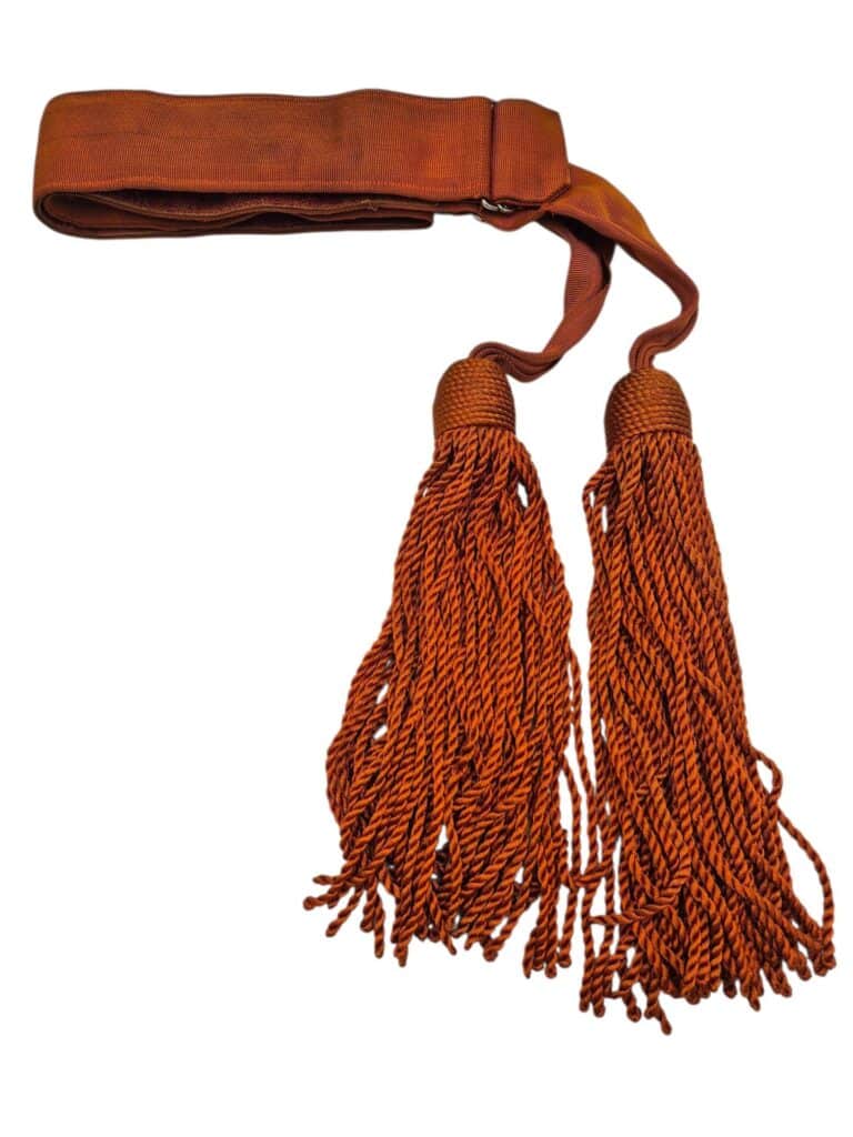 Deze werd gedragen 0p het zwarte pak. De sjerp verkeerd in een zeer goede staat en is compleet met de sluithaakjes en de rode leren voering aan de binnenzijde. Bij dit model zitten er zware verchroomde haakjes op de sjerp, zeer goede makelij.