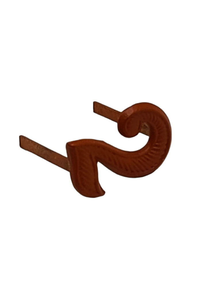 Oranje embleem voor de Nederlandse veldmuts. De nummer 2 heeft nog al zijn oranje verf en heeft beide buigpennetjes nog.
