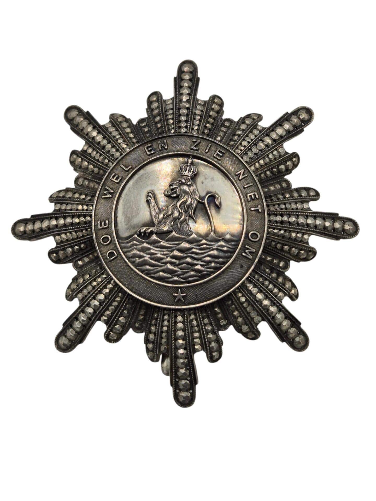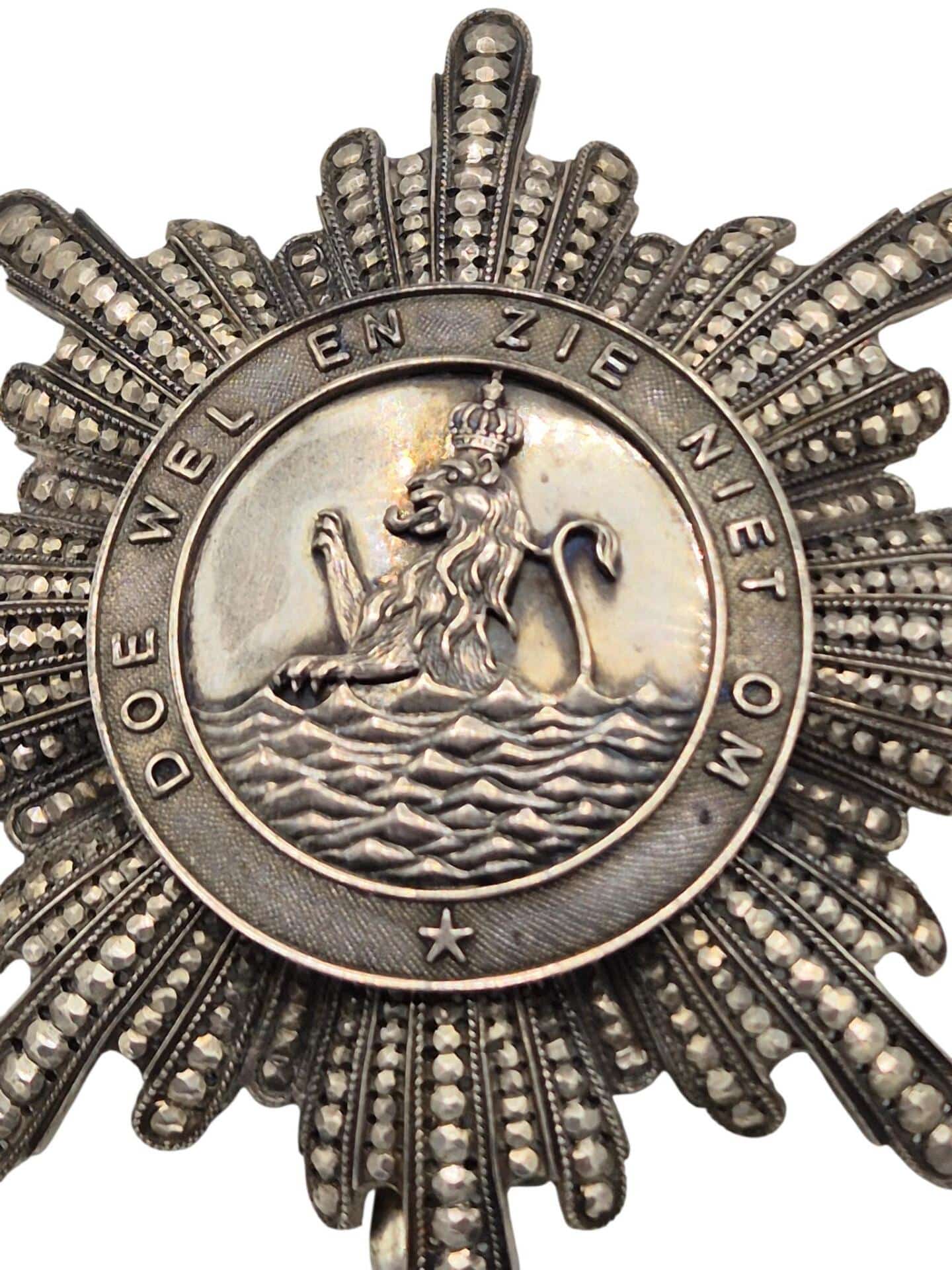 Orde van de Unie, prachtige verzilverde borstster. Aan de voorzijde de tekst Doe wel en zie niet om, nog compleet met de originele pin die netjes BOZ is gemarkeerd. Betreft een aanmaak ca 1850. Deze orde werd in 1806 ingesteld door Lodewijk Napoleon de toenmalige koning van Holland. De orde is slechts korte tijd uitgegeven, maar is nog wel lang in gebruik gebleven en gedragen. De ster is nog in een fantastische conditie zonder enige schade. Mooi stukje Nederlandse geschiedenis.