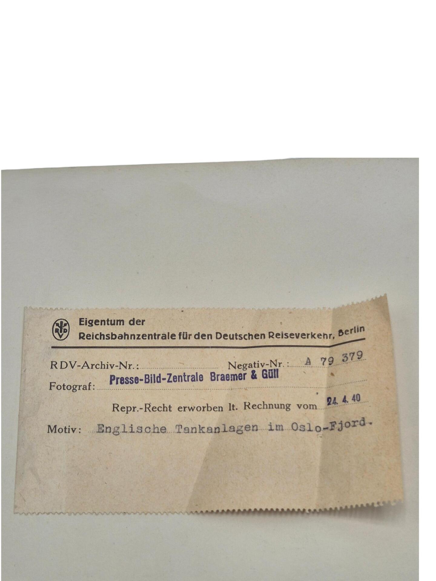 Very nice big German press photo. It shows a camoouflage painted British fuel storage in Norway in april 1940.