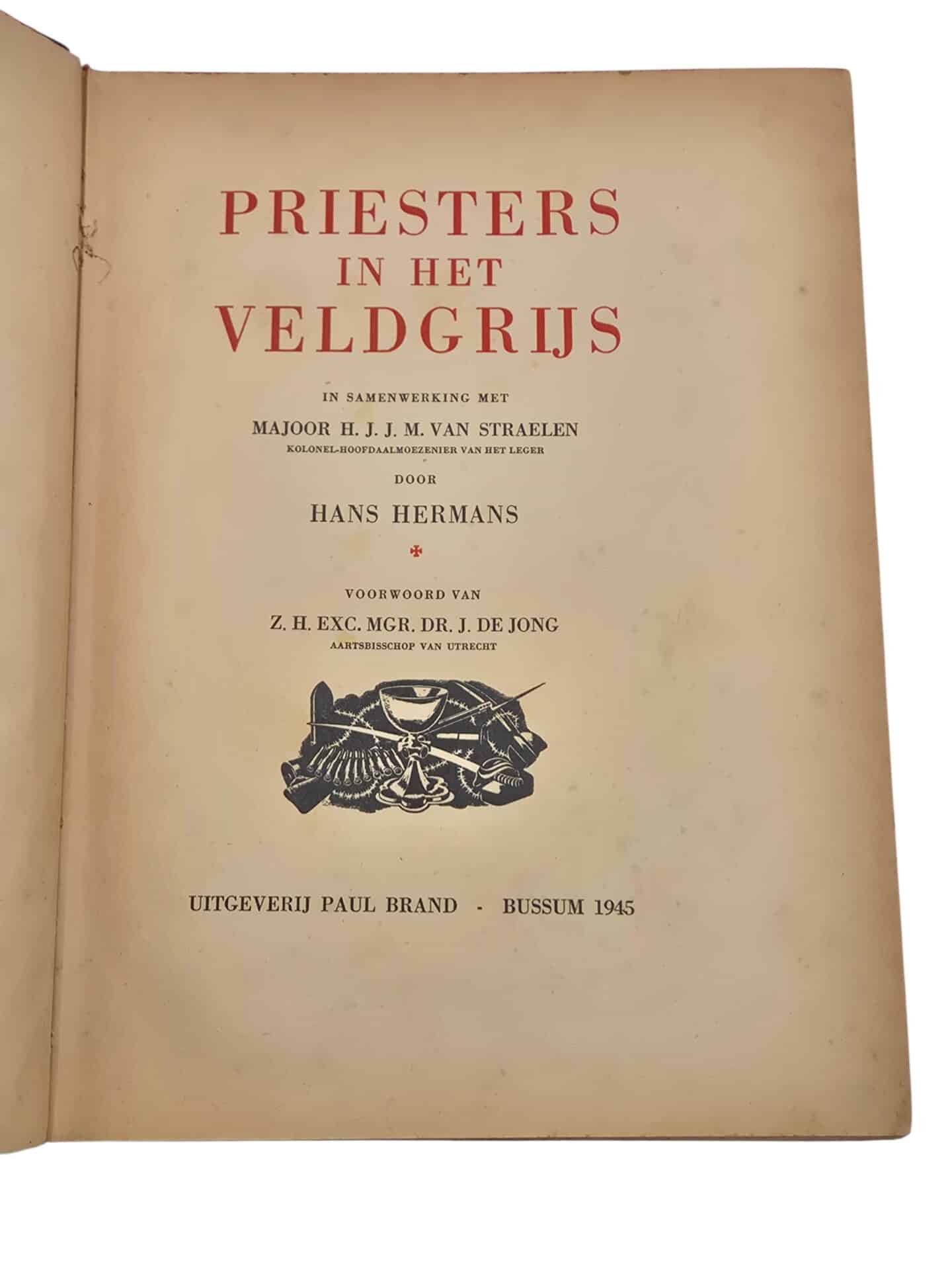 Interessant boek over de priesters in het veldgrijs. Het boek is uitgegeven in 1945 en in 1946 kado gedaan door leden van de Vincentius vereniging ter ere van het 12,5 jaar priesterschap van de betreffende priester. Met handtekeningen van de leden. Interessant boek om verder te onderzoeken waar de priester gelegerd was tijdens de meidagen.