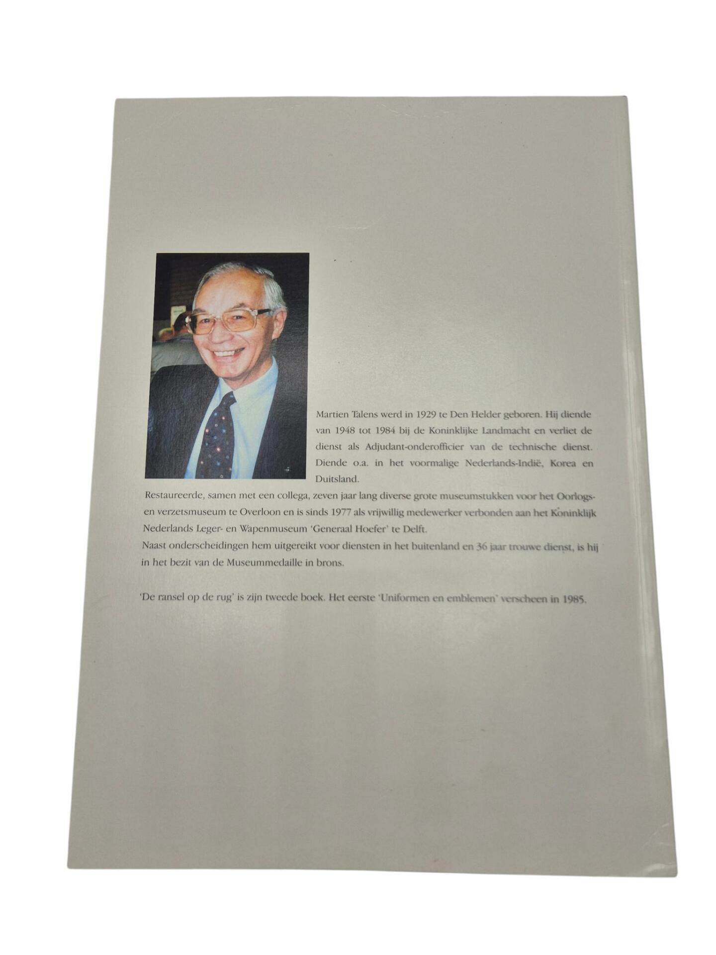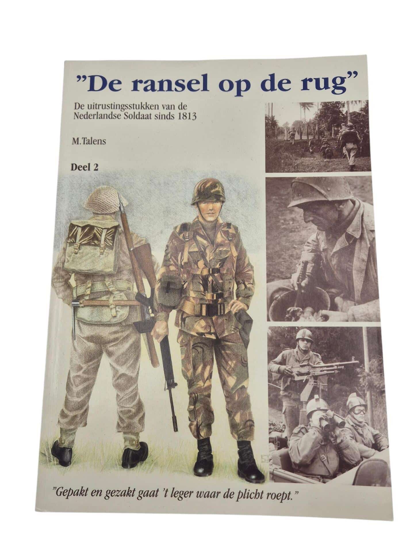 Ransel op de rug deel 2 van M. Talens. De boeken van Talens zijn zeer nuttig voor de Nederlandse verzamelaar omdat deze zeer veel informatie geven over het Nederlandse leger. In deel 2 wordt ook aandacht geschonken aan het Nederlandse leger tot 1940, waaronder de Nederlandse helmen, gasmaskertassen en medische uitrusting. Een must have voor elke Nederlandse militaria verzamelaar!