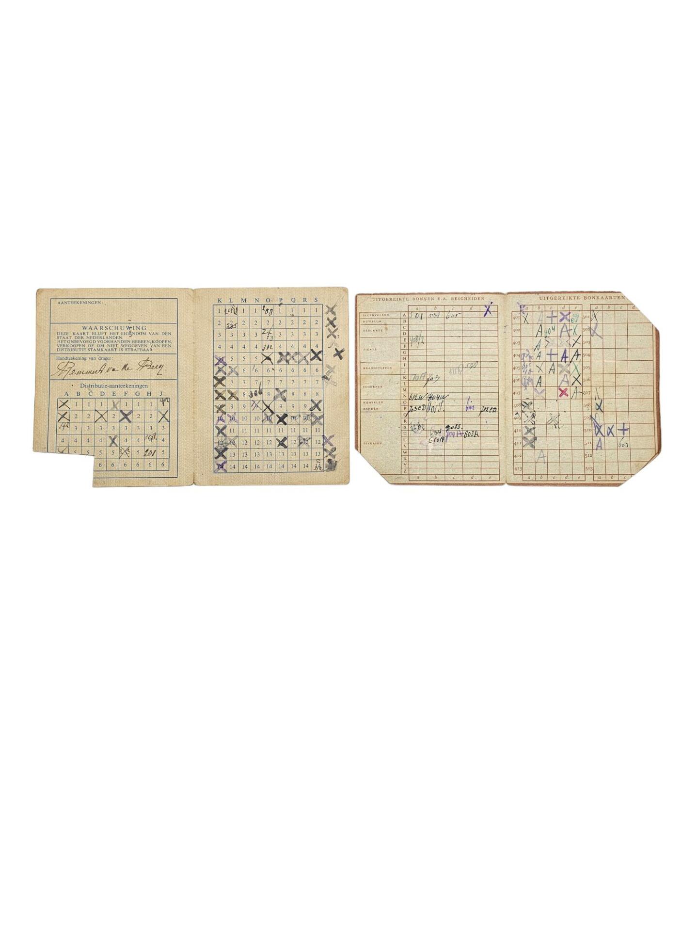 Leuke set stamkaarten van 1 familie, vader, moeder en dochter. Van dochter en vader de 1e en 2e distributiekaart van de moeder alleen de 1e distributiekaart. Allemaal mooi vroeg 09 oktober 1939 gestempeld. Tevens een gedrukte mobilisatie oproep! De oproep heeft iets waterschade opgelopen maar is nog grotendeels leesbaar. Leuke set van 1 familie