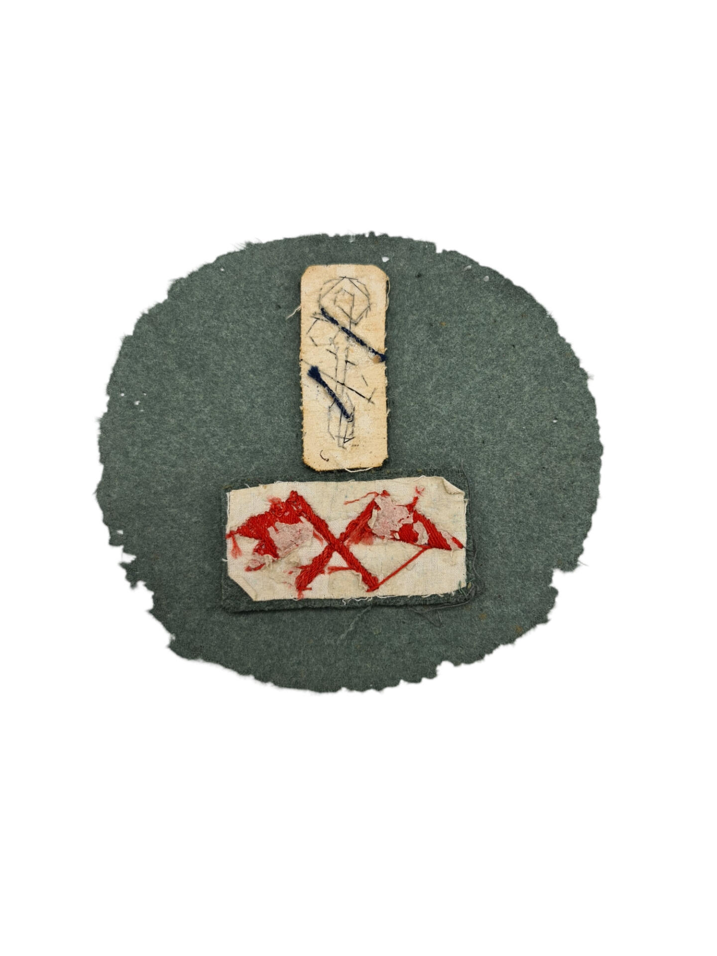 Set vaardigheidsemblemen seiner telefonist manschappen. De emblemen verkeren in een zeer goede staat. Bij de emblemen komt een stukje veldgrijze stof zodat er een mooi display gemaakt kan worden.