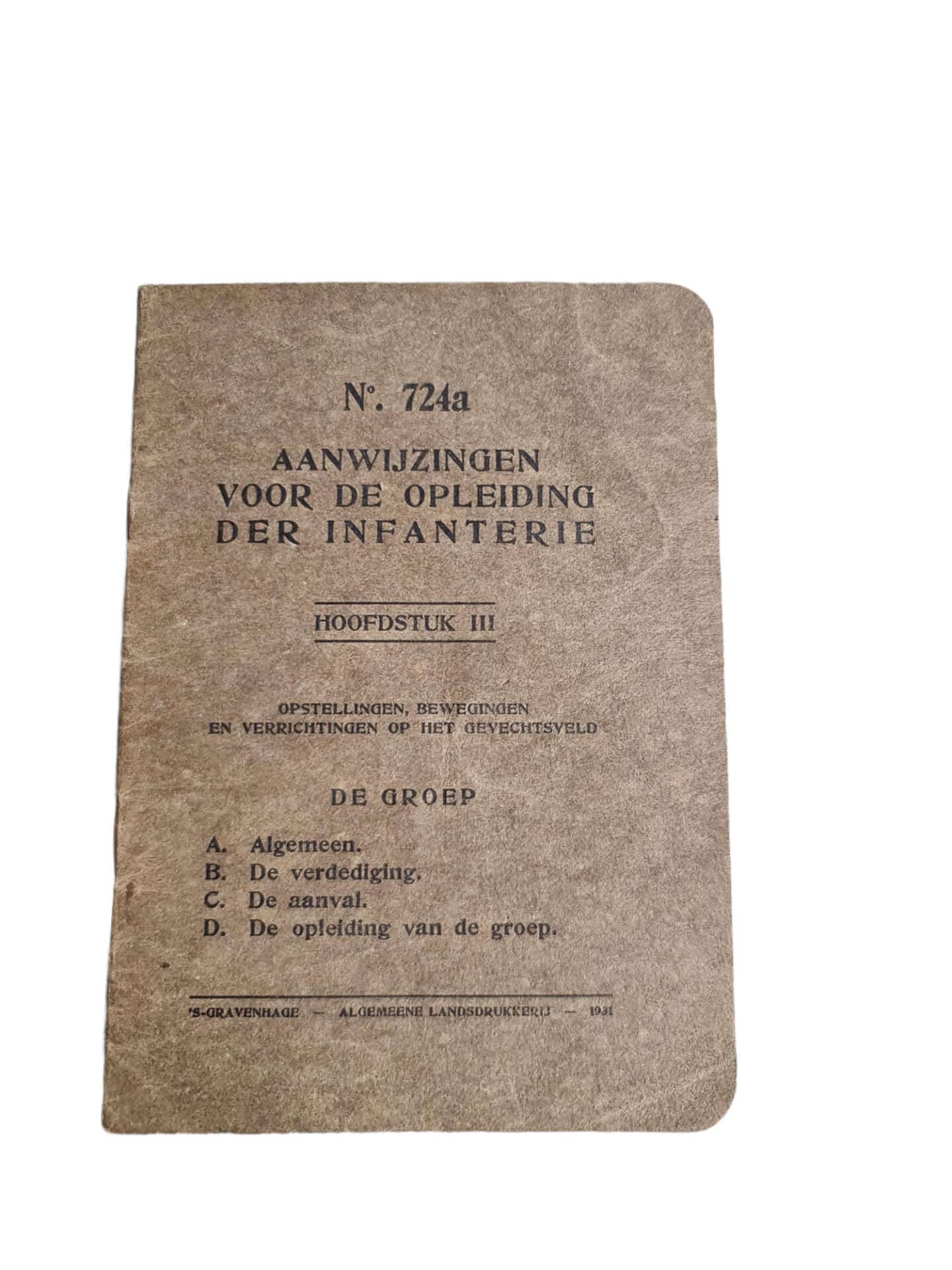 Set vooroorlogse Nederlandse voorschriften aanwijzingen voor de opleiding der infanterie. De set bestaat uit 4 verschillende delen. Interessante boekje aangaande de Nederlandse infanterie eenheden!