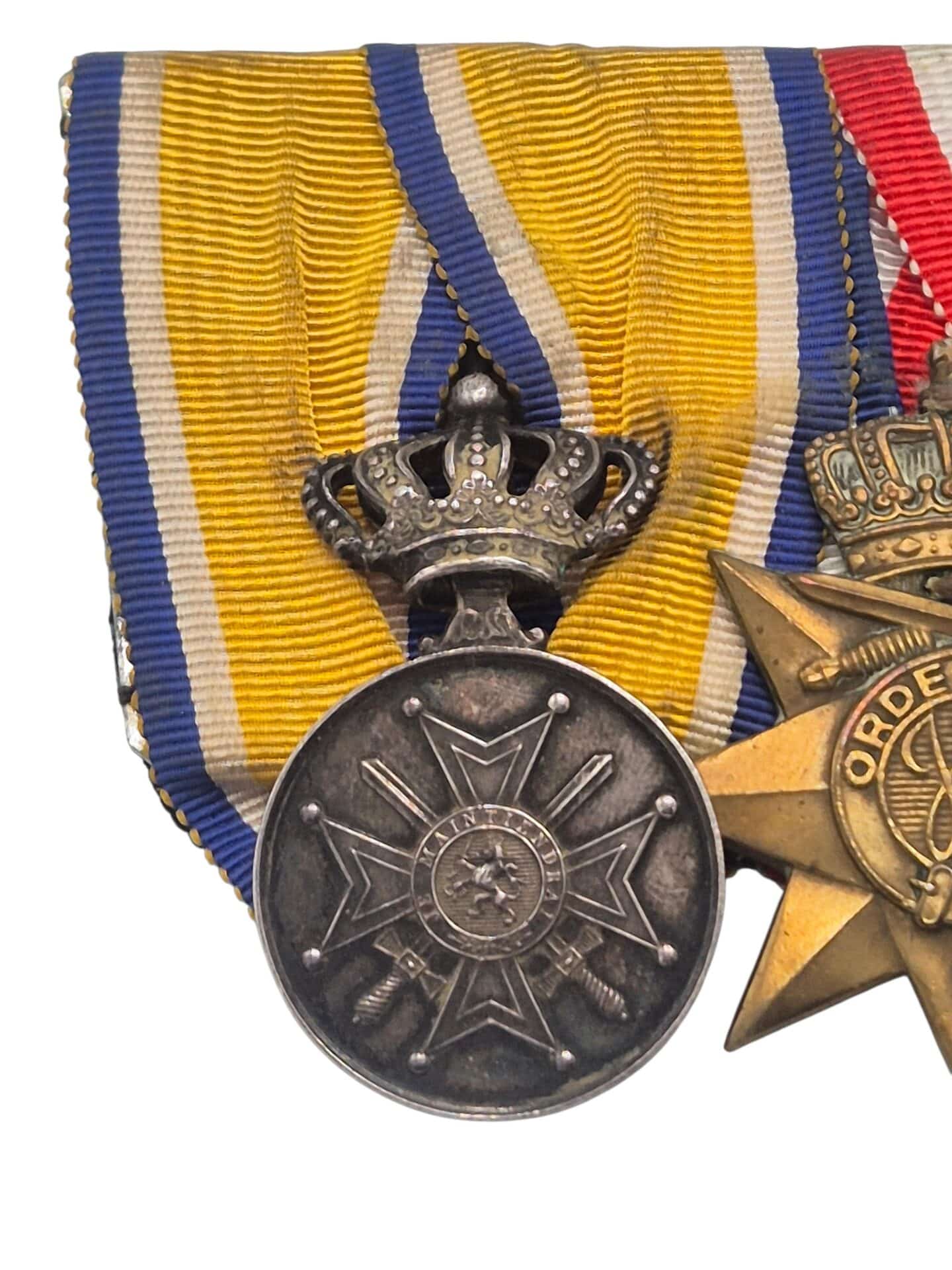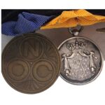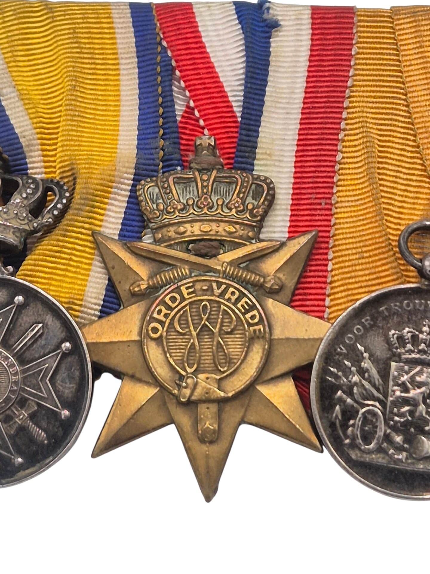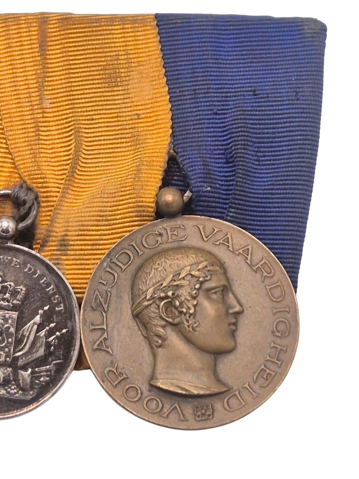 Prachtige set van een Nederlandse onderofficier, de set bestaat uit een eremedaille Oranje Nassau in zilver met zwaarden, de orde en vrede medaille, zilveren trouwe dienst medaille voor 24 jaar en de NOC medaille.