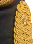 Mooie vooroorlogse ceremoniële jas voor een officier der grenadiers. De jas is nog in een prachtige conditie, zonder motgaten of schade. Het goud bouillon is nog mooi helder van kleur en de knopen zijn nog prachtig glimmend. Compleet met de originele schouderstukken met het springende granaatje. De jas is niet op naam of gedateerd maar is zeker een jaren 30 uitvoering gezien de knopen en schouderstukken. De jas is wel voorzien van een label van de kledingmaker Maison Van Hal Breda.