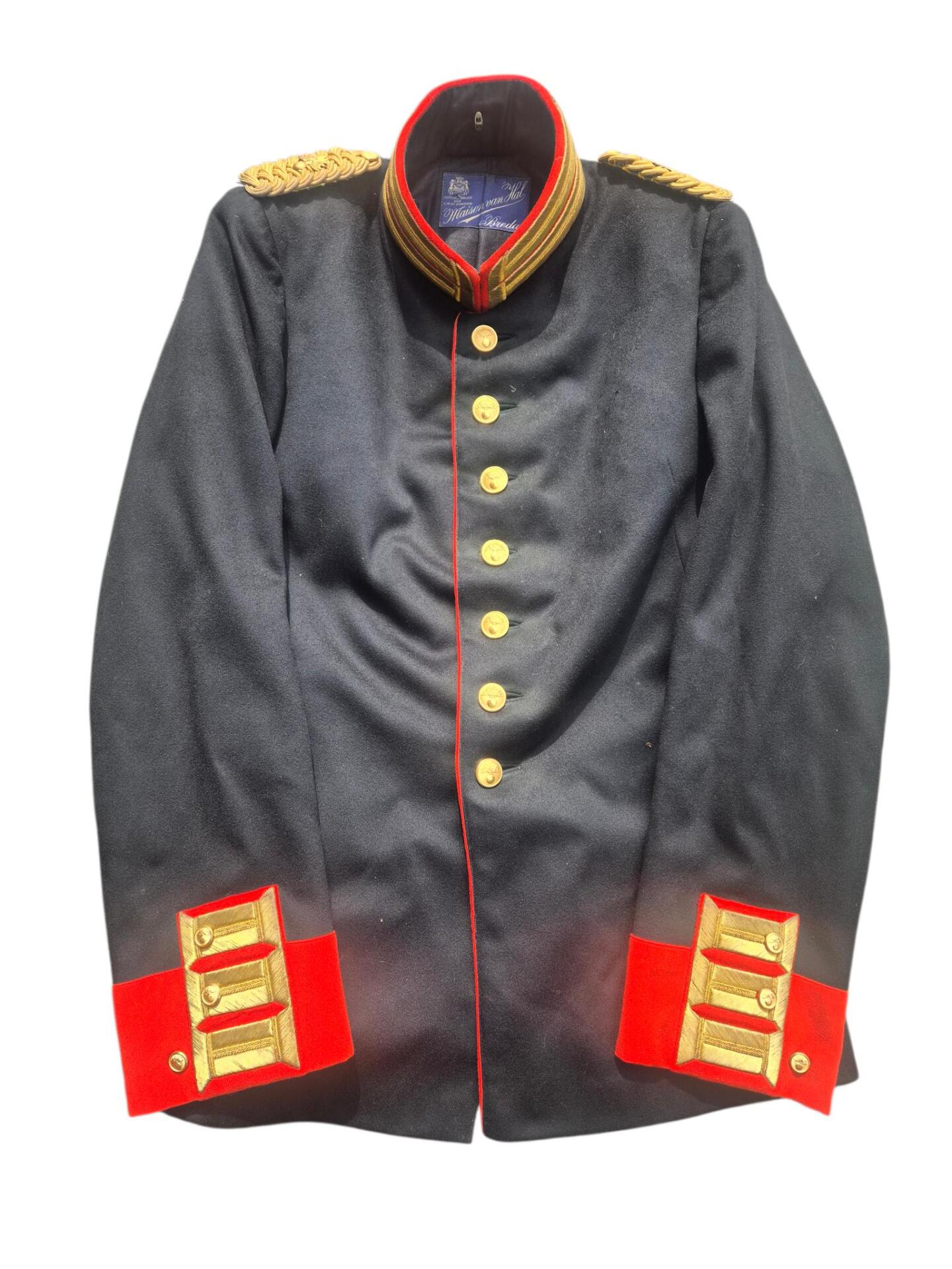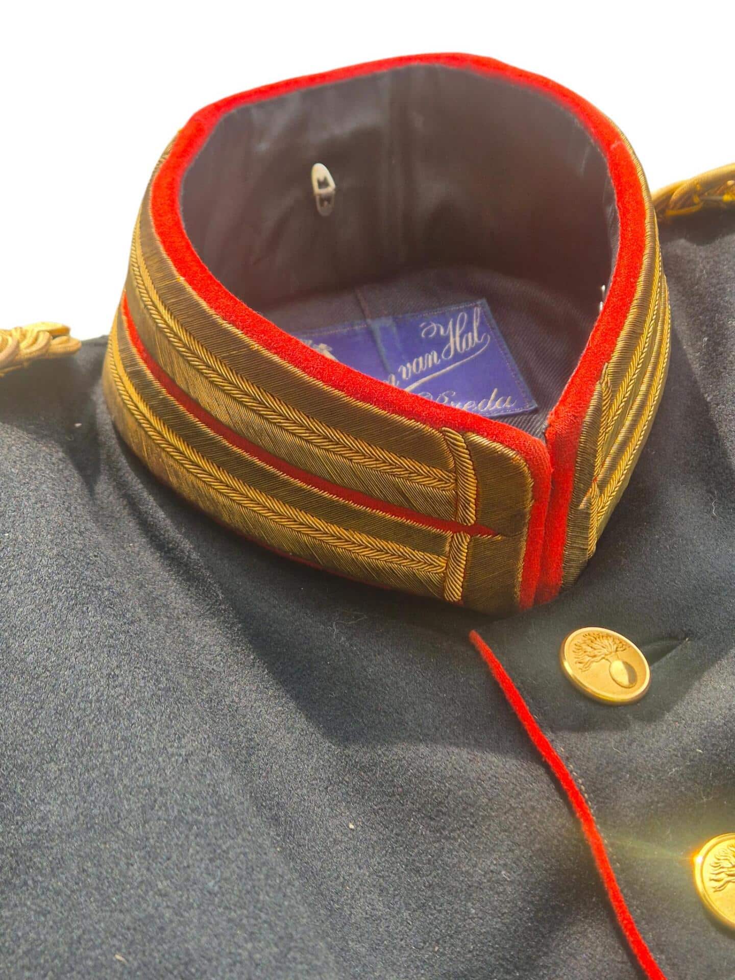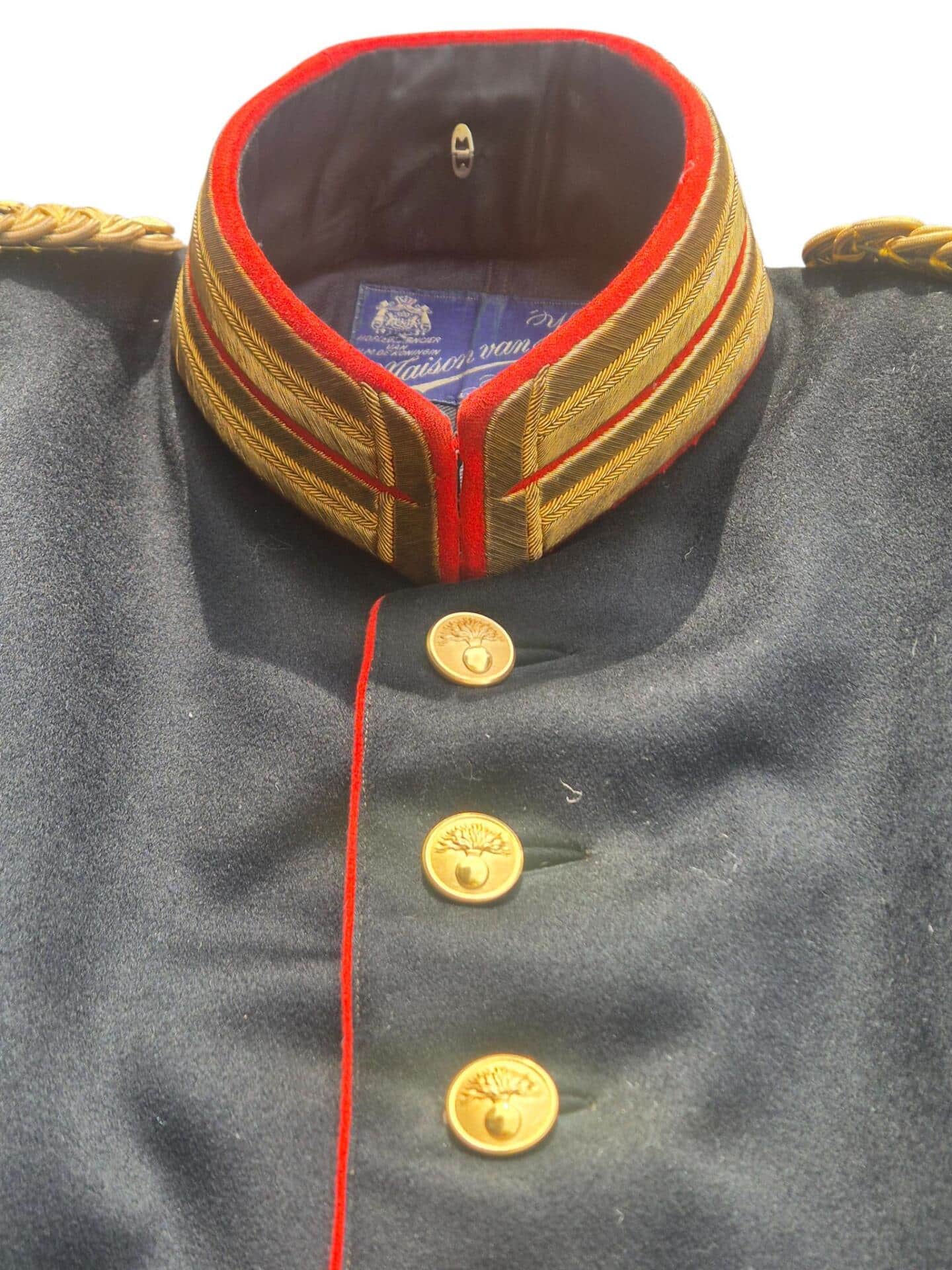 Mooie vooroorlogse ceremoniële jas voor een officier der grenadiers. De jas is nog in een prachtige conditie, zonder motgaten of schade. Het goud bouillon is nog mooi helder van kleur en de knopen zijn nog prachtig glimmend. Compleet met de originele schouderstukken met het springende granaatje. De jas is niet op naam of gedateerd maar is zeker een jaren 30 uitvoering gezien de knopen en schouderstukken. De jas is wel voorzien van een label van de kledingmaker Maison Van Hal Breda.