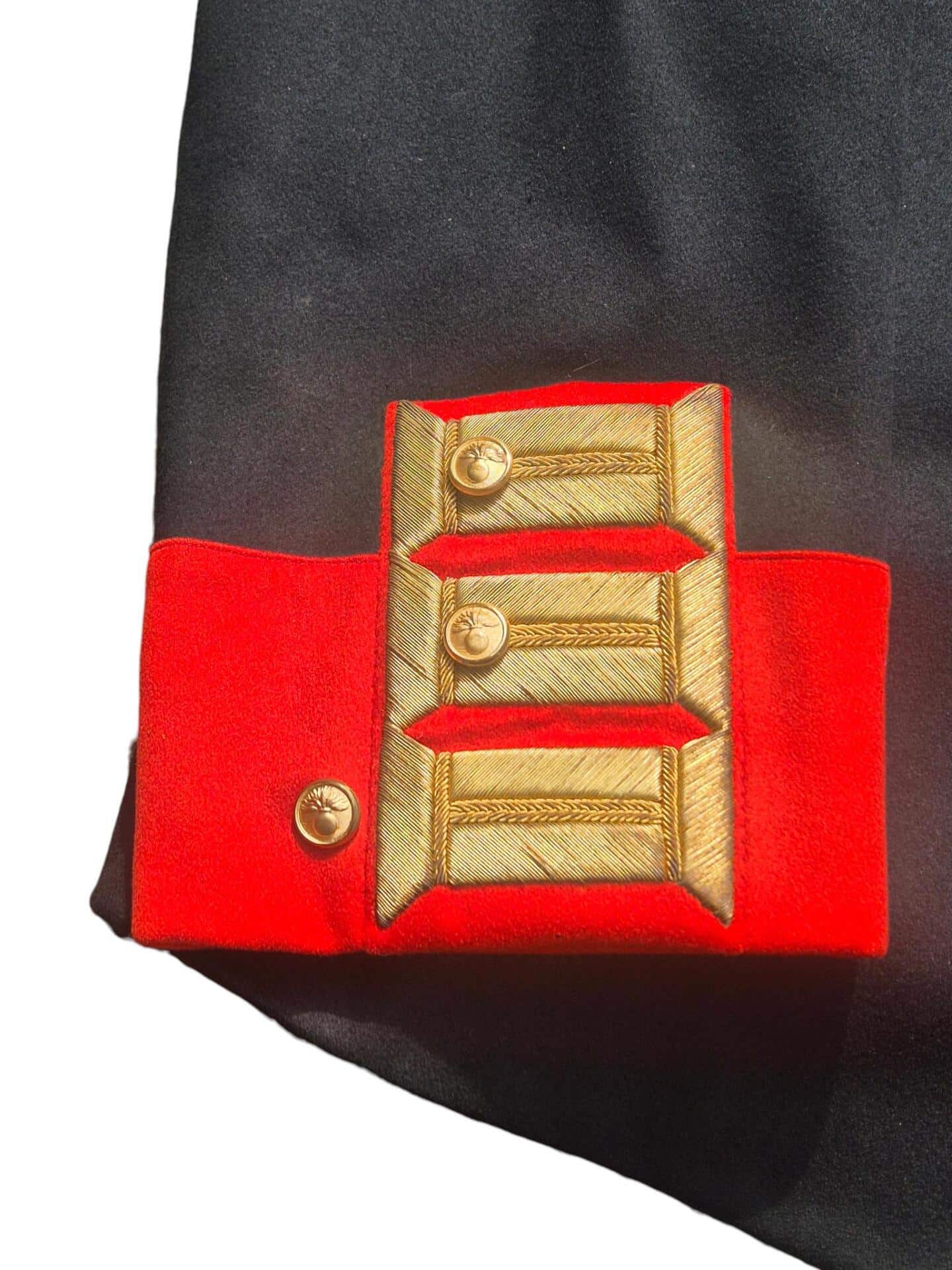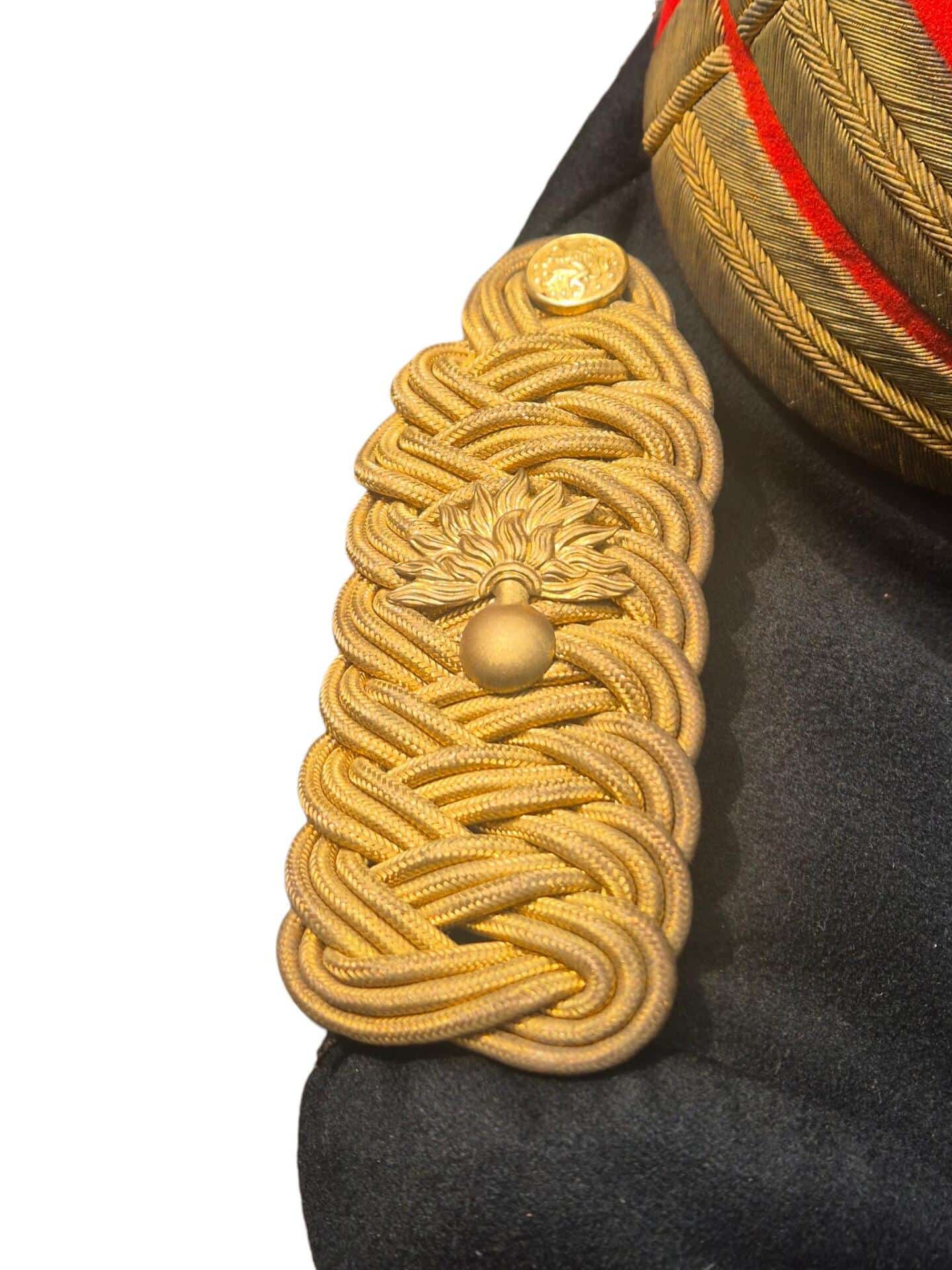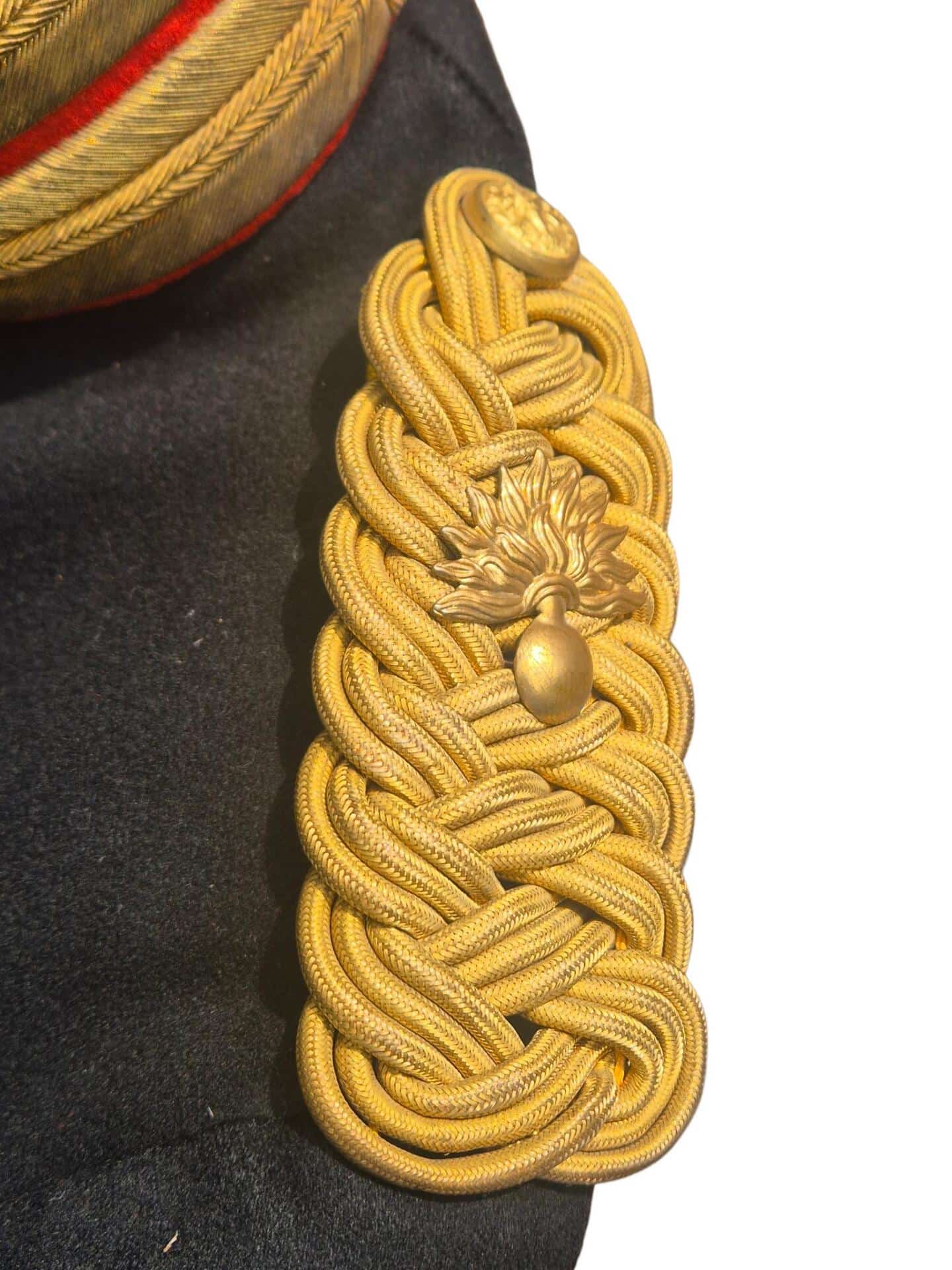 Mooie vooroorlogse ceremoniële jas voor een officier der grenadiers. De jas is nog in een prachtige conditie, zonder motgaten of schade. Het goud bouillon is nog mooi helder van kleur en de knopen zijn nog prachtig glimmend. Compleet met de originele schouderstukken met het springende granaatje. De jas is niet op naam of gedateerd maar is zeker een jaren 30 uitvoering gezien de knopen en schouderstukken. De jas is wel voorzien van een label van de kledingmaker Maison Van Hal Breda.