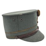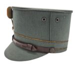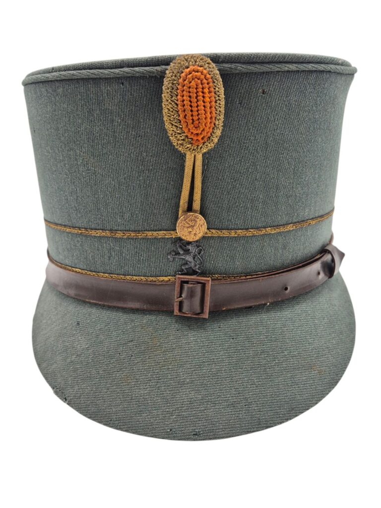 Mooie veldgrijze kepie van een officier. De kepie verkeerd in een goede staat met een aantal motplekjes. De kepie is gemaakt van midden jaren 30 ribcord. Op de kepie zit het leeuwtje . Hierboven zit de gouden kokarde en 2 gouden biezen, horende bij de rangaanduiding van een officier. De lederen stormriem verkeerd nog in een mooie staat. De binnenzijde van de kepie is nog in een zeer goede conditie met een soepele leren zweetband.