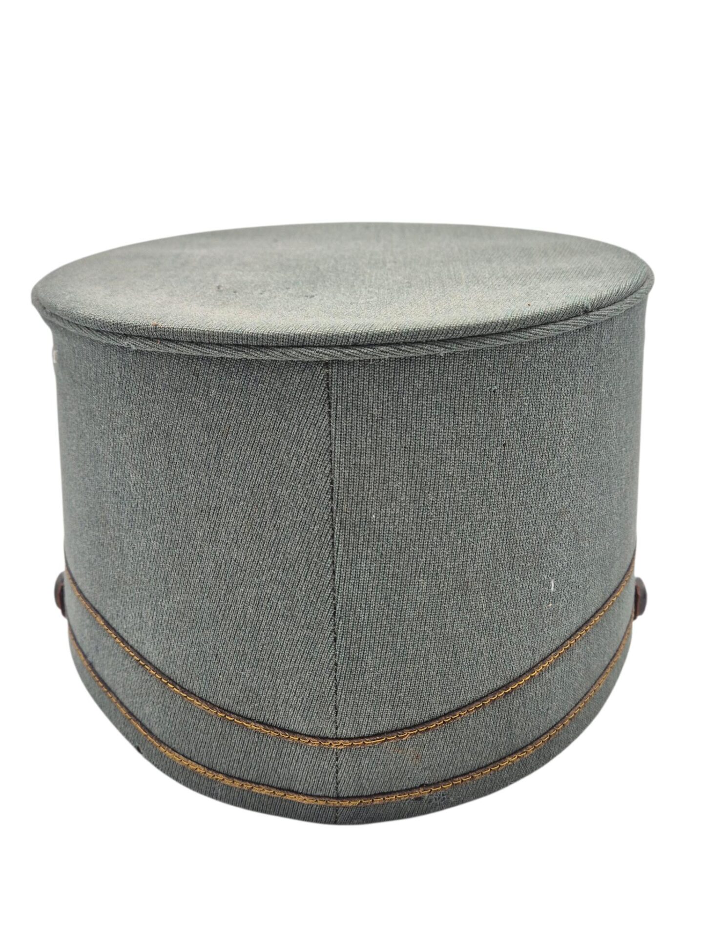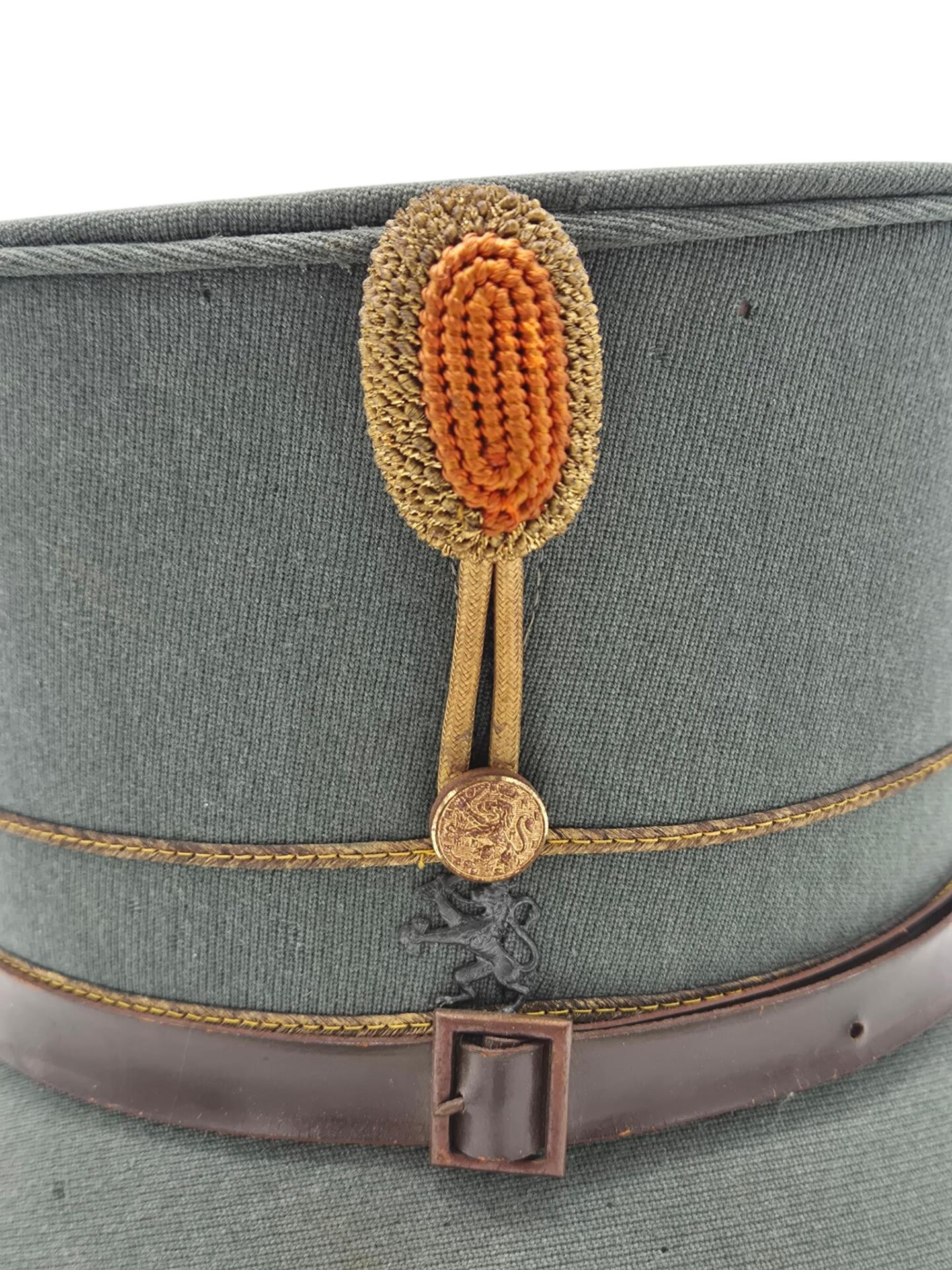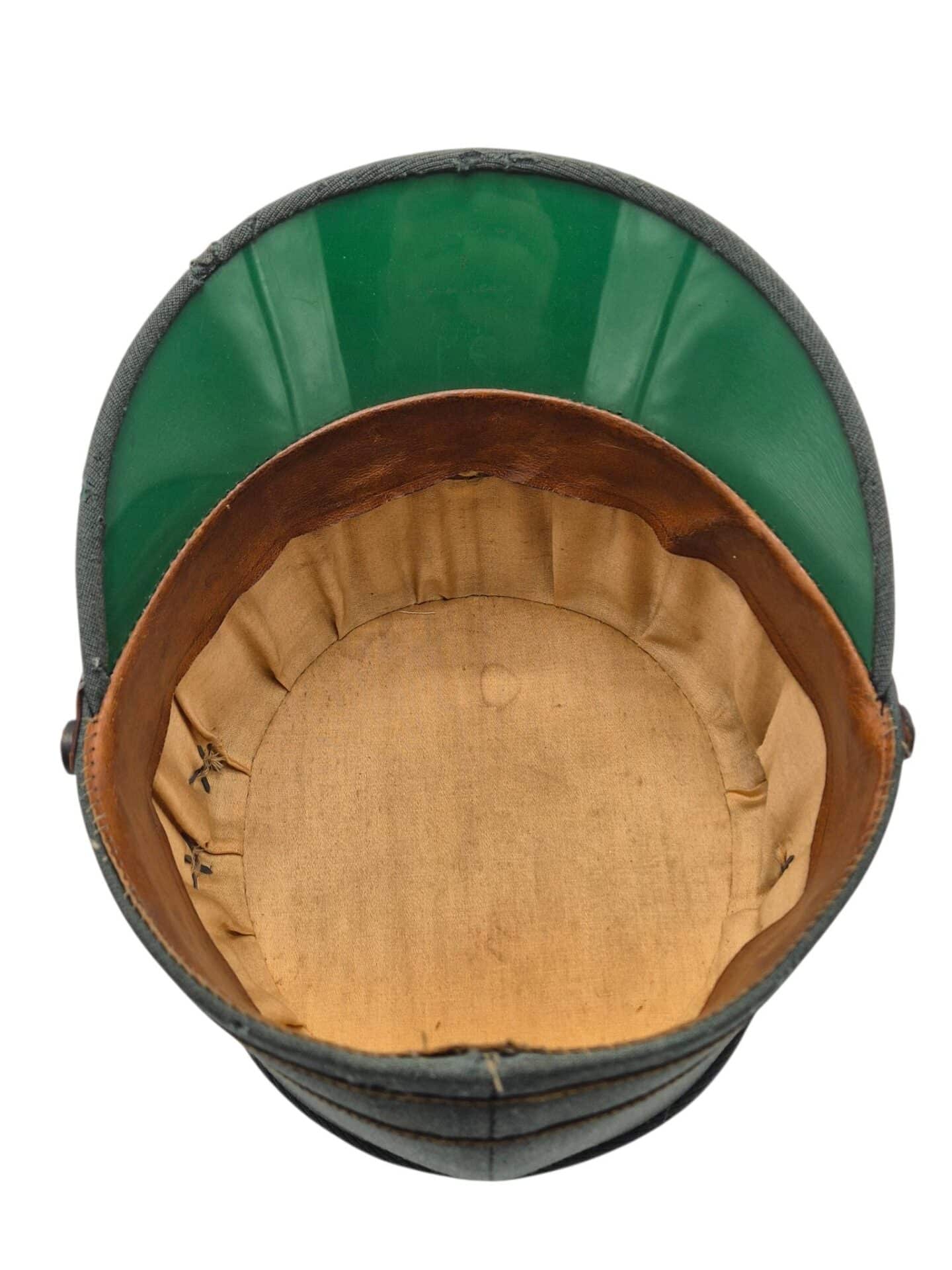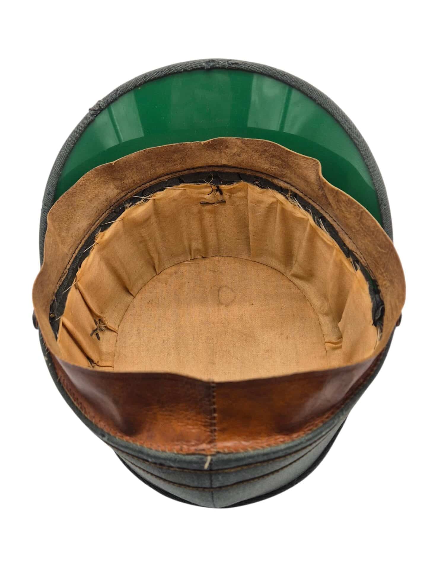 Mooie veldgrijze kepie van een officier. De kepie verkeerd in een goede staat met een aantal motplekjes. De kepie is gemaakt van midden jaren 30 ribcord. Op de kepie zit het leeuwtje . Hierboven zit de gouden kokarde en 2 gouden biezen, horende bij de rangaanduiding van een officier. De lederen stormriem verkeerd nog in een mooie staat. De binnenzijde van de kepie is nog in een zeer goede conditie met een soepele leren zweetband.