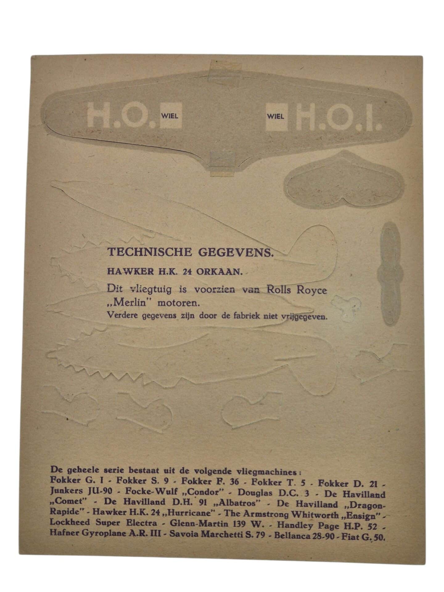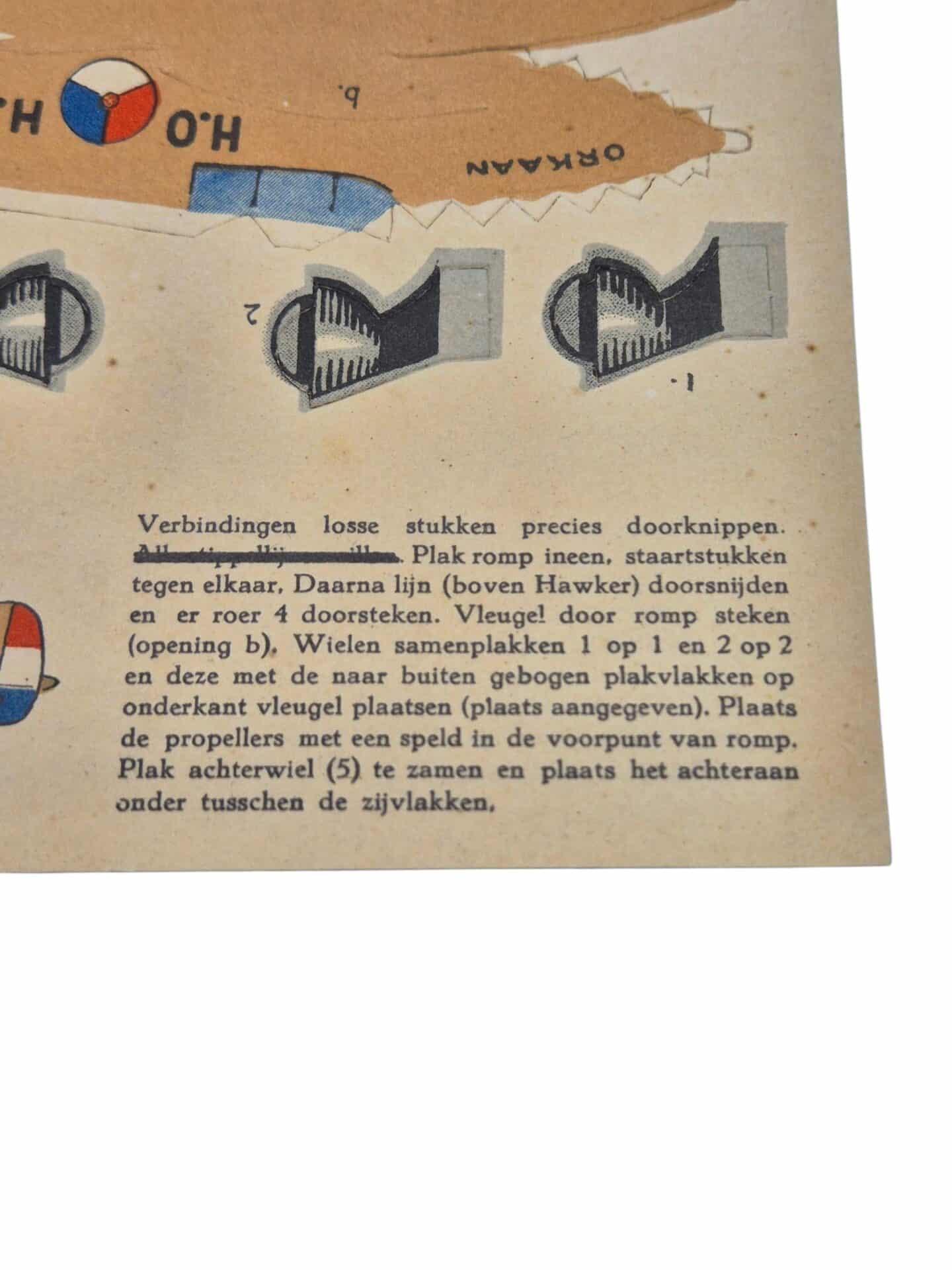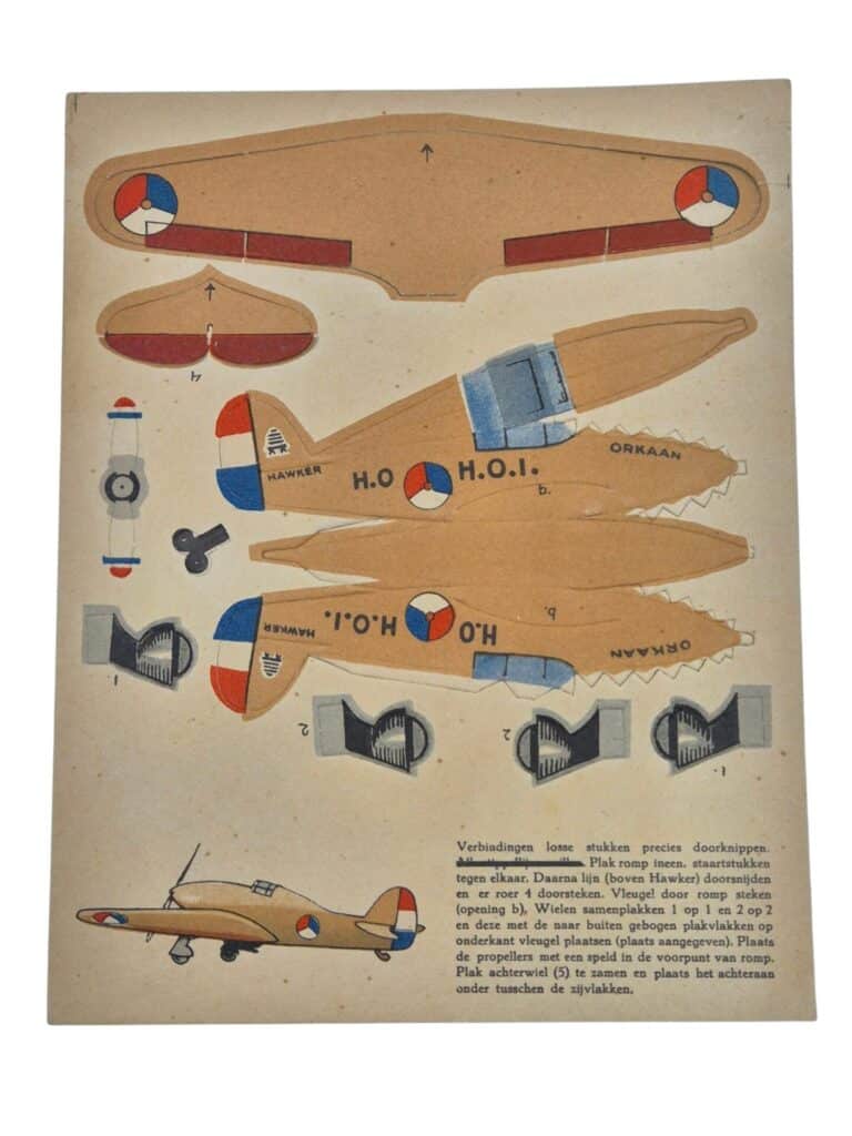 Vooroorlogse papieren bouwsetje Hawker HK 24 Orkaan. Leuk papieren model in nog complete en zeer goede conditie. Iets grote dan ansichtkaart formaat