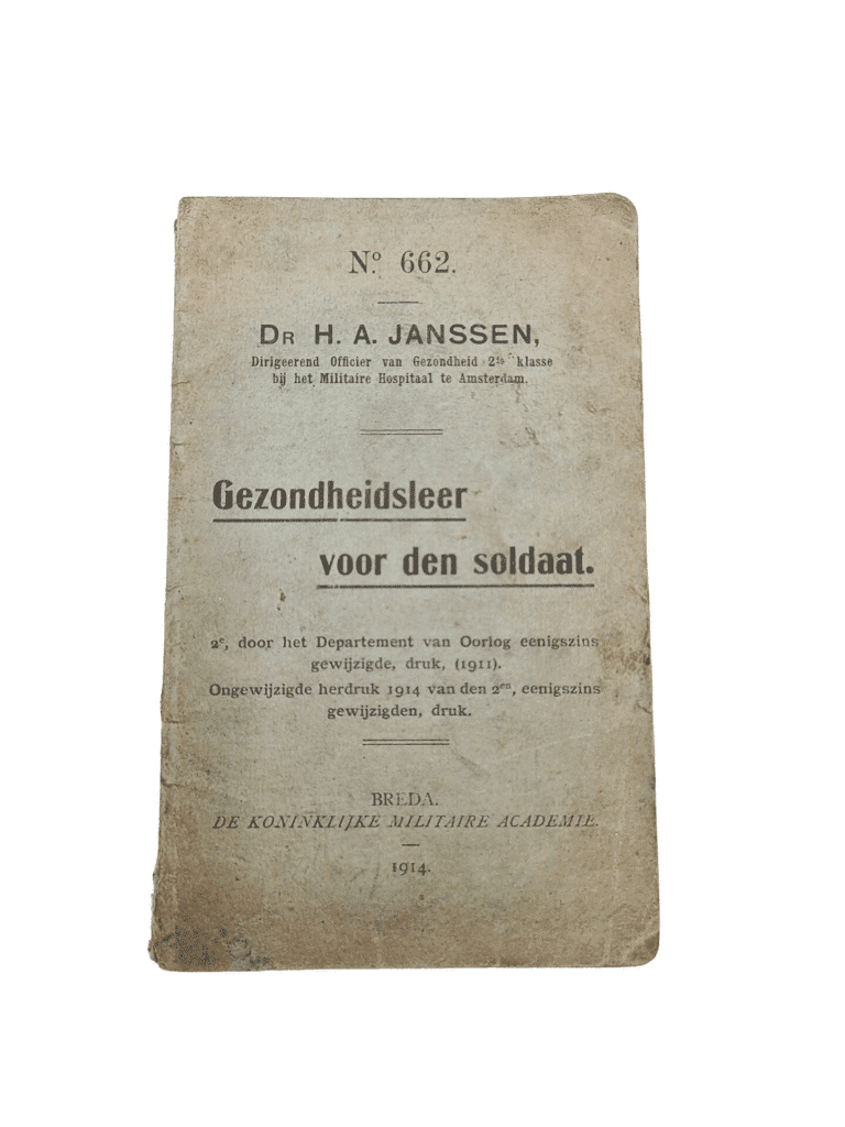 Nederlands voorschrift no 662 Gezondheidsleer voor den soldaat 1914. Het voorschrift verkeerd in een nette staat en is uitgegeven in 1914.