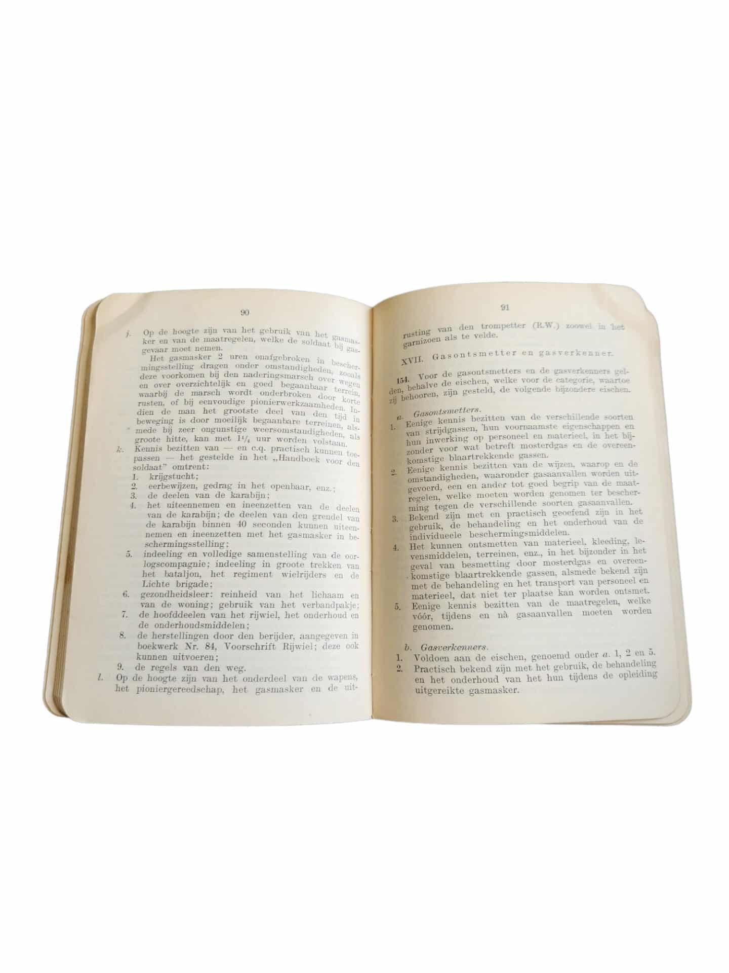 Voorschrift no.91 grondslagen en regeling. Het boekje was eigendom van Kapitein Heijmans, adjudant van de kolonel TBO groep ijssel zuid.