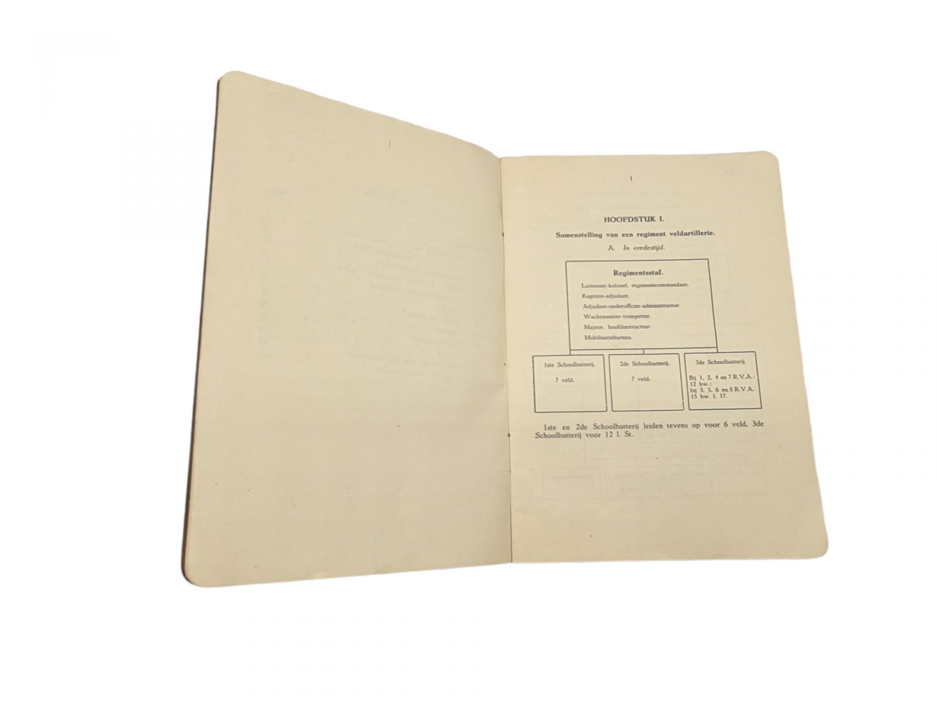 Nederlands voorschrift nr. 26a. Handboek voor den soldaat. Deel A. Artillerie, bereden artillerie en algemeen. Het boekje verkeerd in een zeer goede staat en is uitgegeven in 1938. Het boekje geeft veel informatie over de Nederlandse artillerie, zoals het type geschut en bijbehorende munitie.