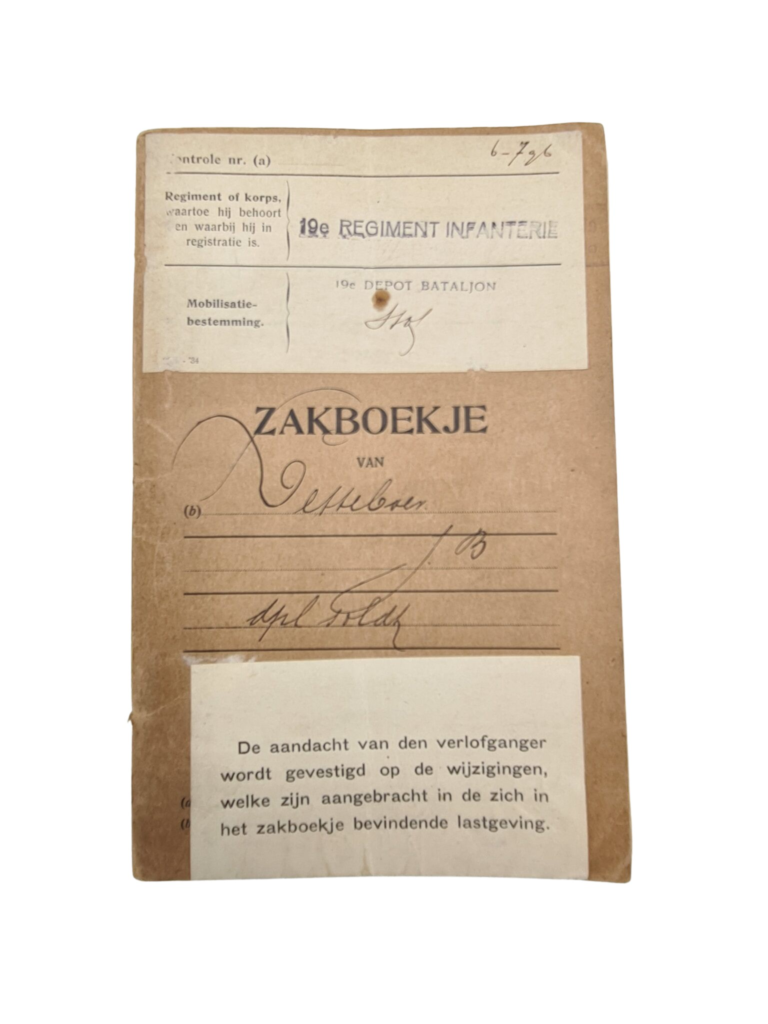 Zakboekje 19e regiment infanterie Hoorn Vriezenveen Arnhem